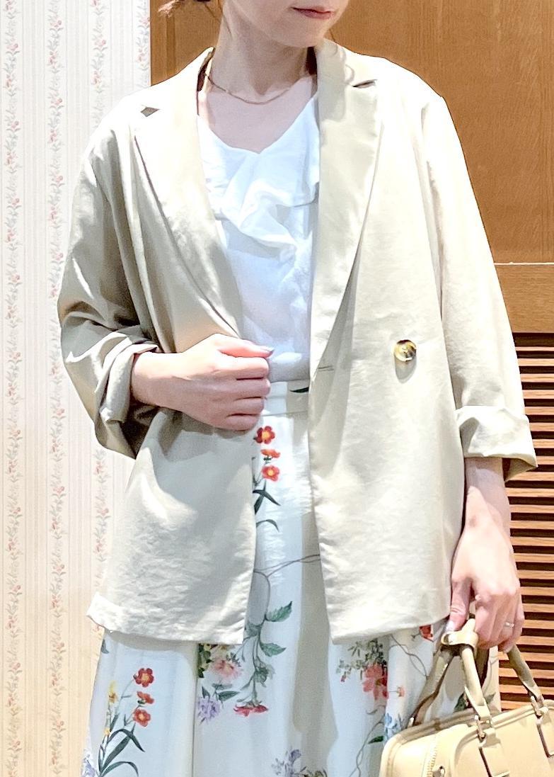 NEW!ROPÉ PICNIC【cahoさんコラボ】低身長・小柄さんサイズ エアリーリネンライク ダブルジャケットベージュ / F¥7,997レビュー薄手の軽い素材感で、シワになりくくお手入れも楽です。