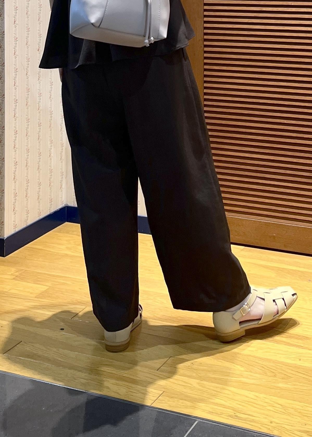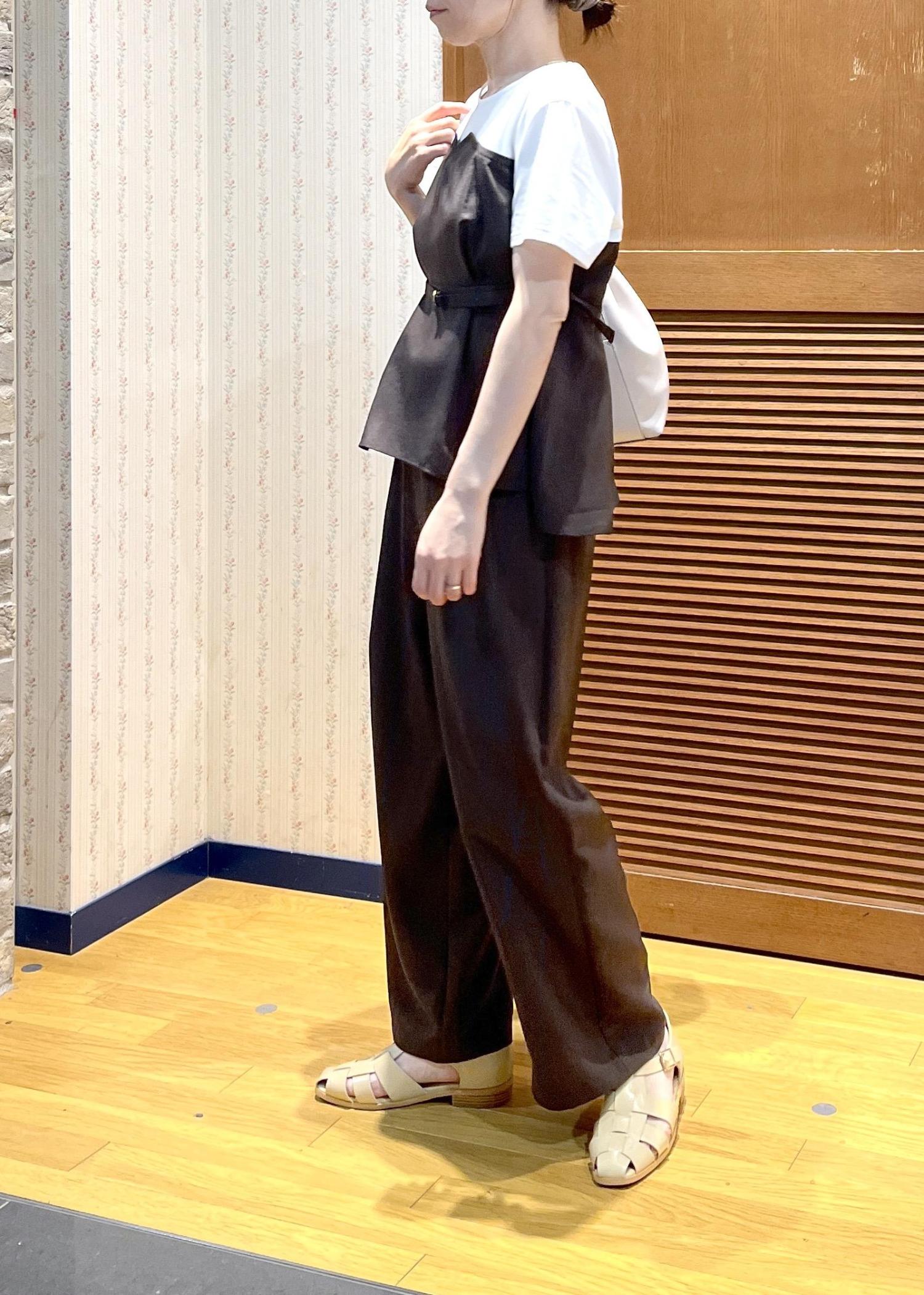 NEW!ROPÉ PICNIC【cahoさんコラボ】低身長・小柄さんサイズ エアリーリネンライク タックワイドパンツダークブラウン / S¥5,995レビューウエストは丁度良いサイズ感、くるぶしが隠れるくらいの丈感でぺたんこのシューズでも合わせやすいです。