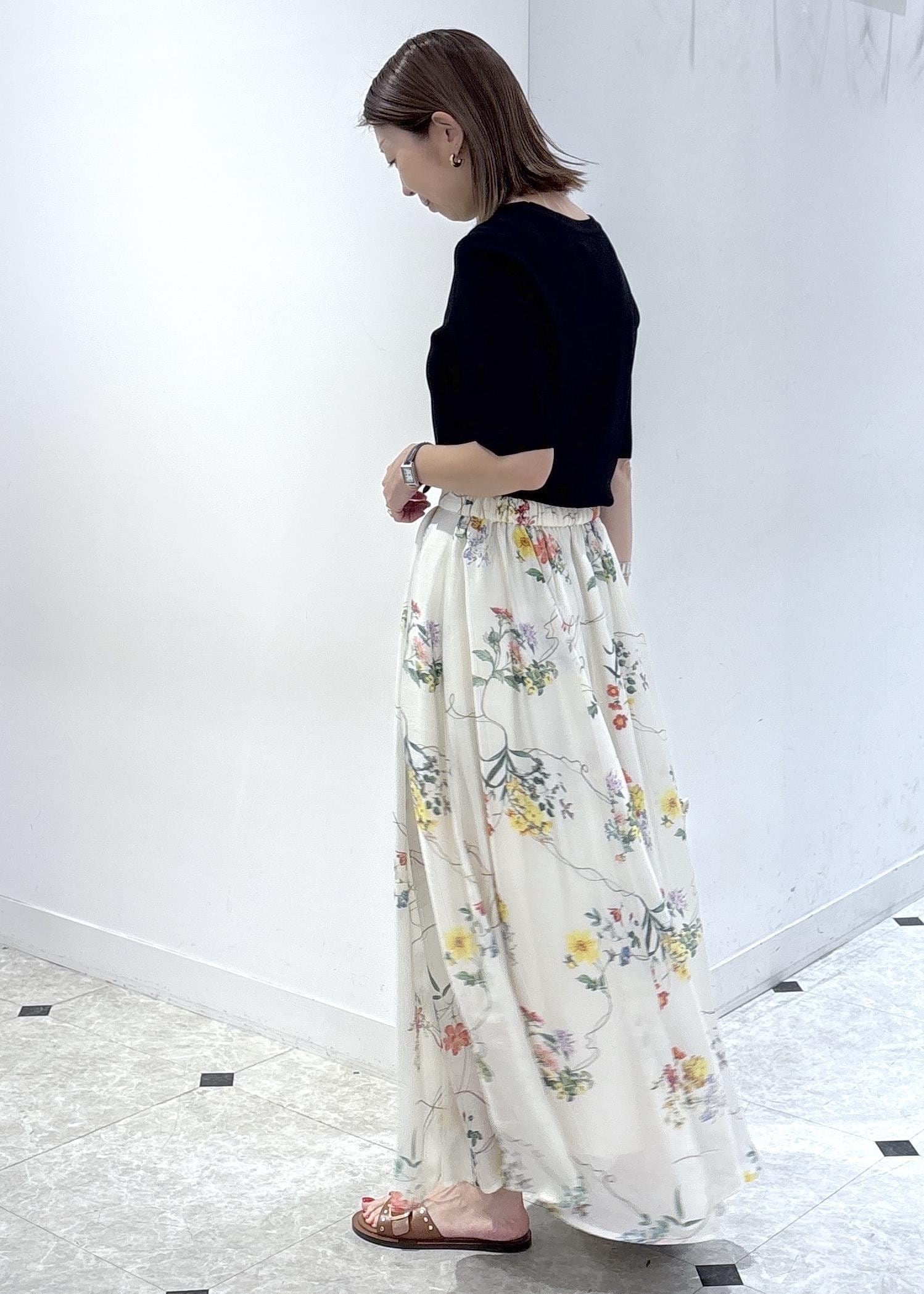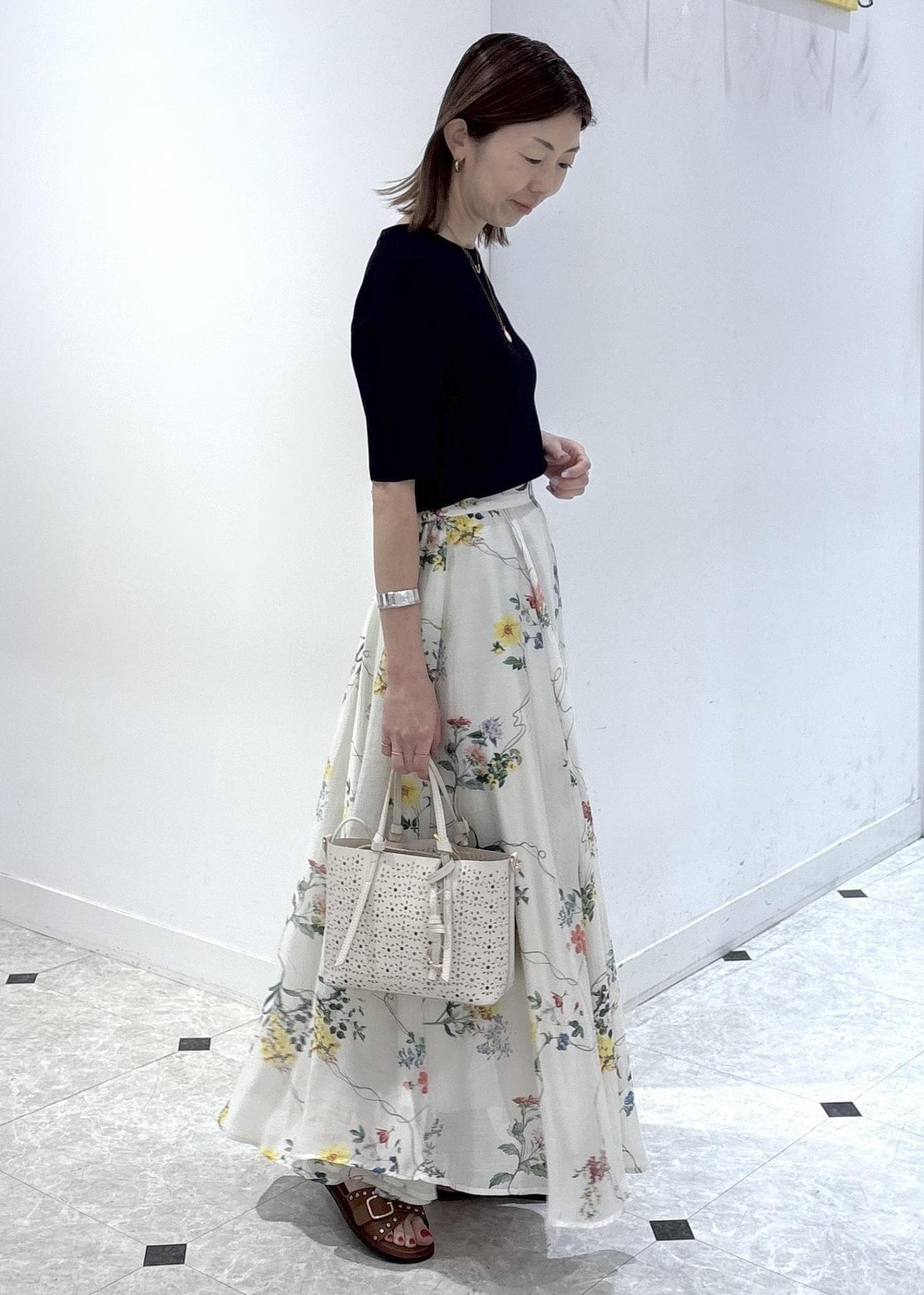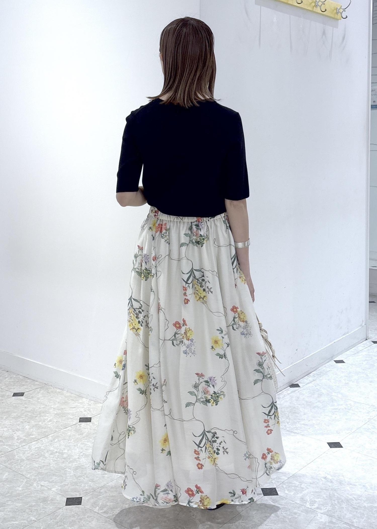 オリジナルのブーケ柄が爽やかで女性らしいボリュームスカート