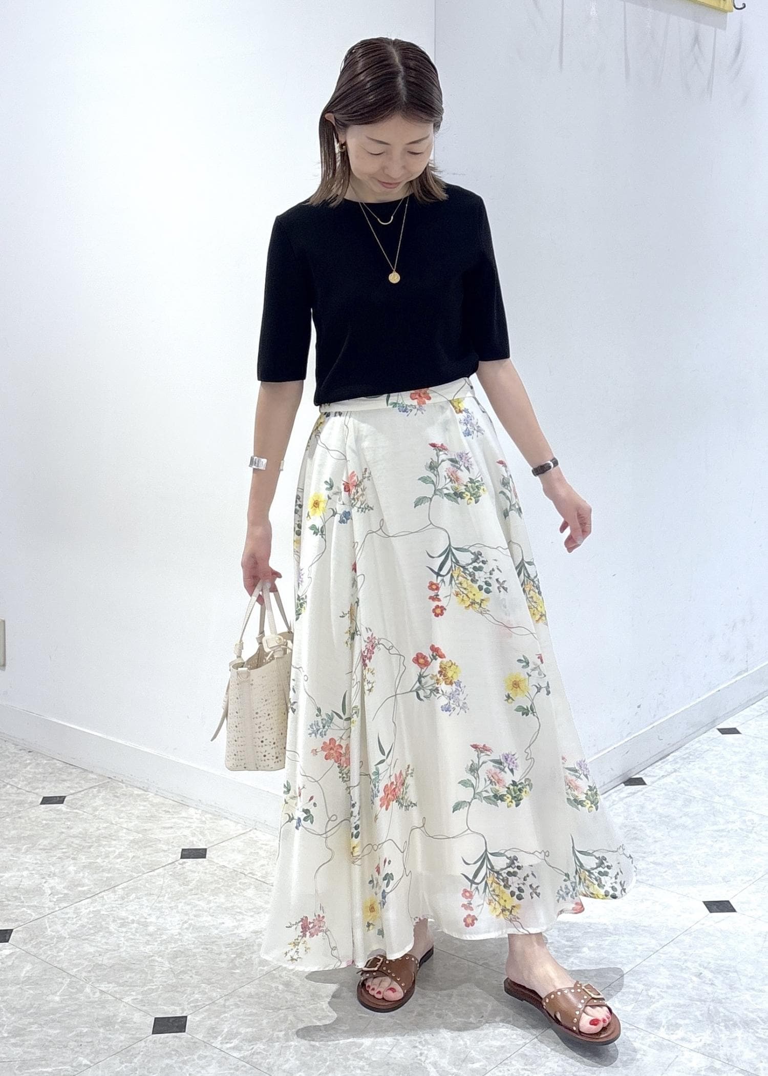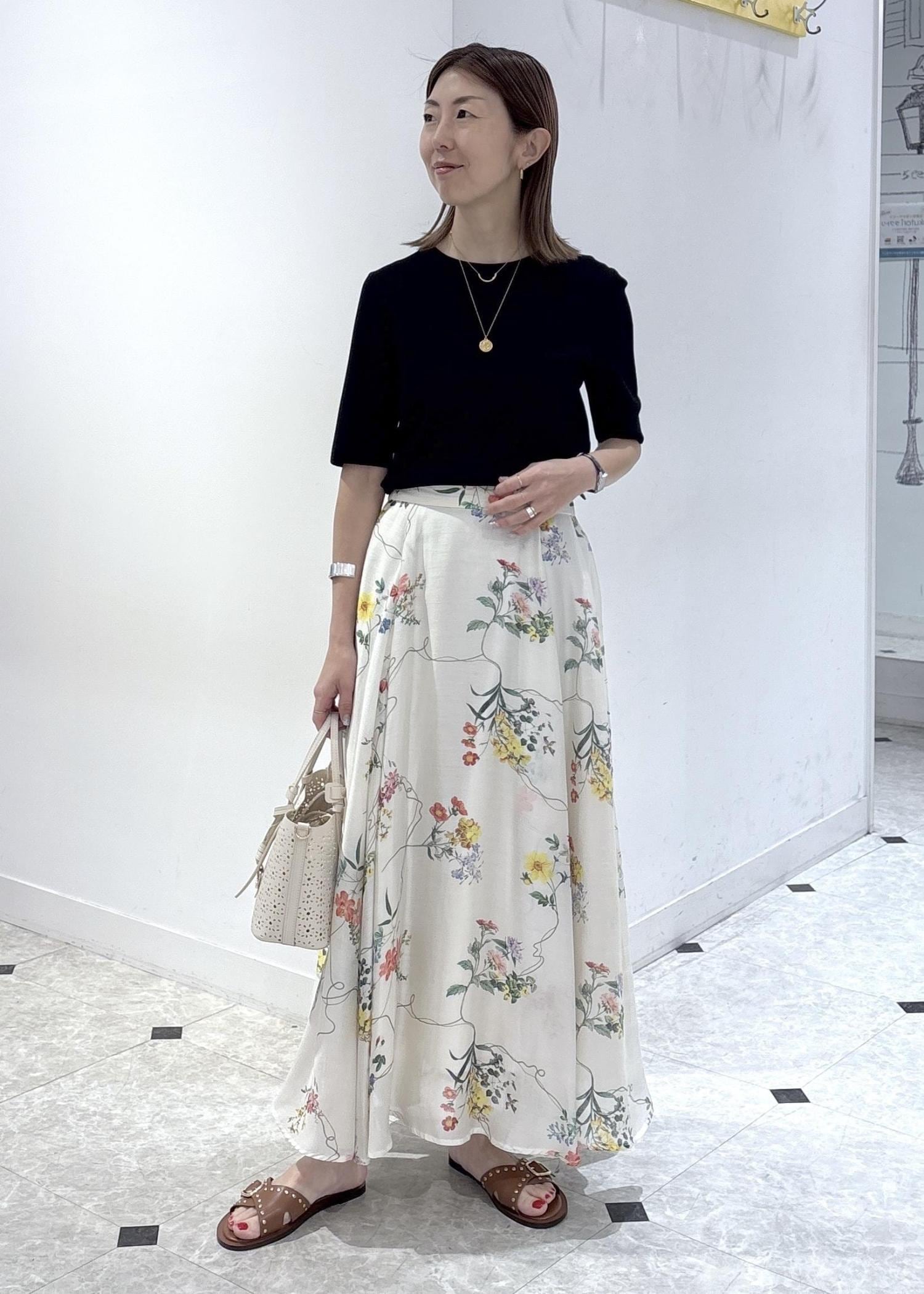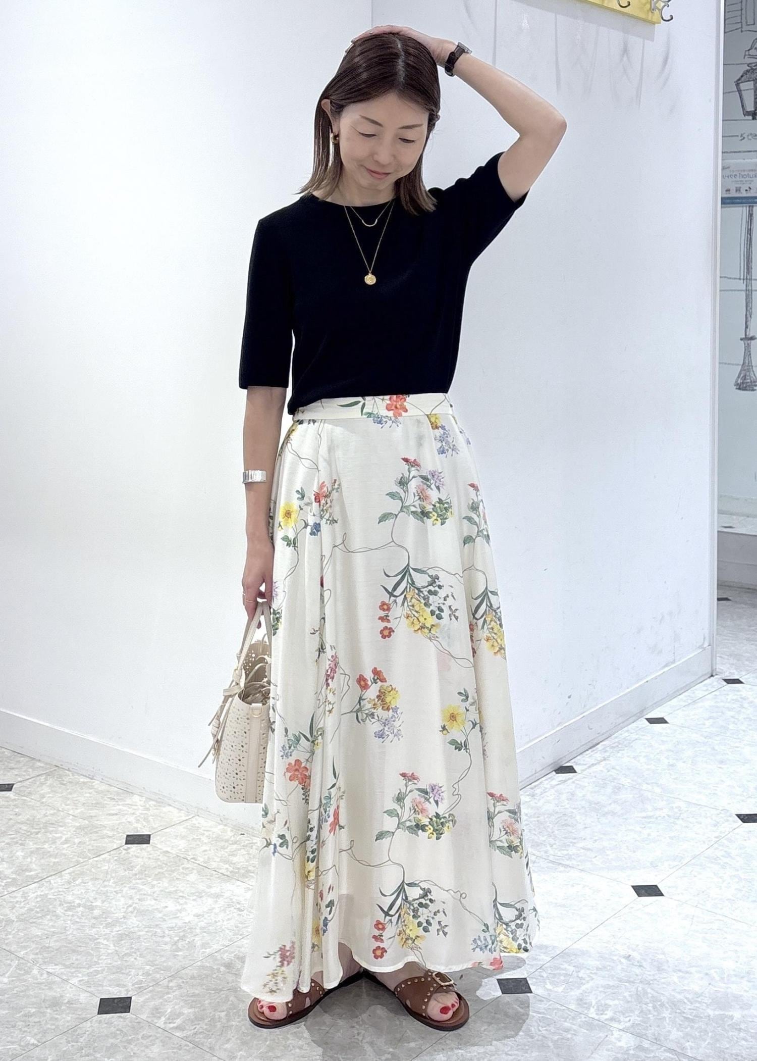 オリジナルのブーケ柄が爽やかで女性らしいボリュームスカート