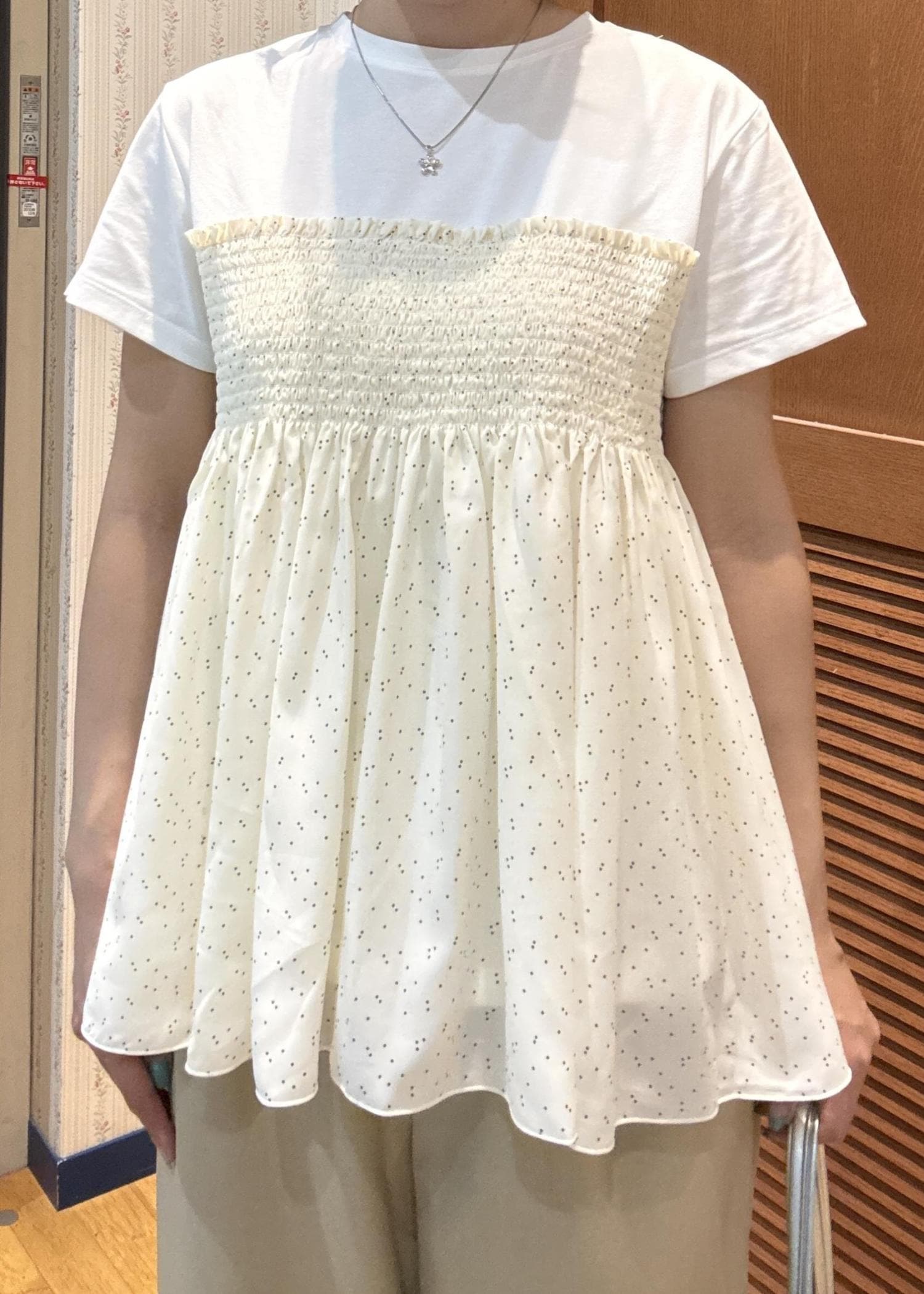 ドット柄と花柄レースを使った、女の子らしいスタイリングを組みました!♡