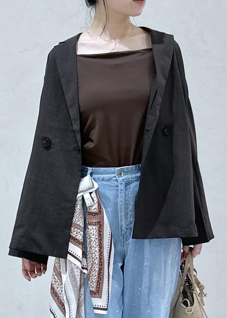 ROPÉ PICNICエアリーリネンライク ダブルジャケット/接触冷感・UVカット・速乾ダークブラウン / F¥7,997レビュー裏地がないので、暑い夏でも着やすいジャケットです!