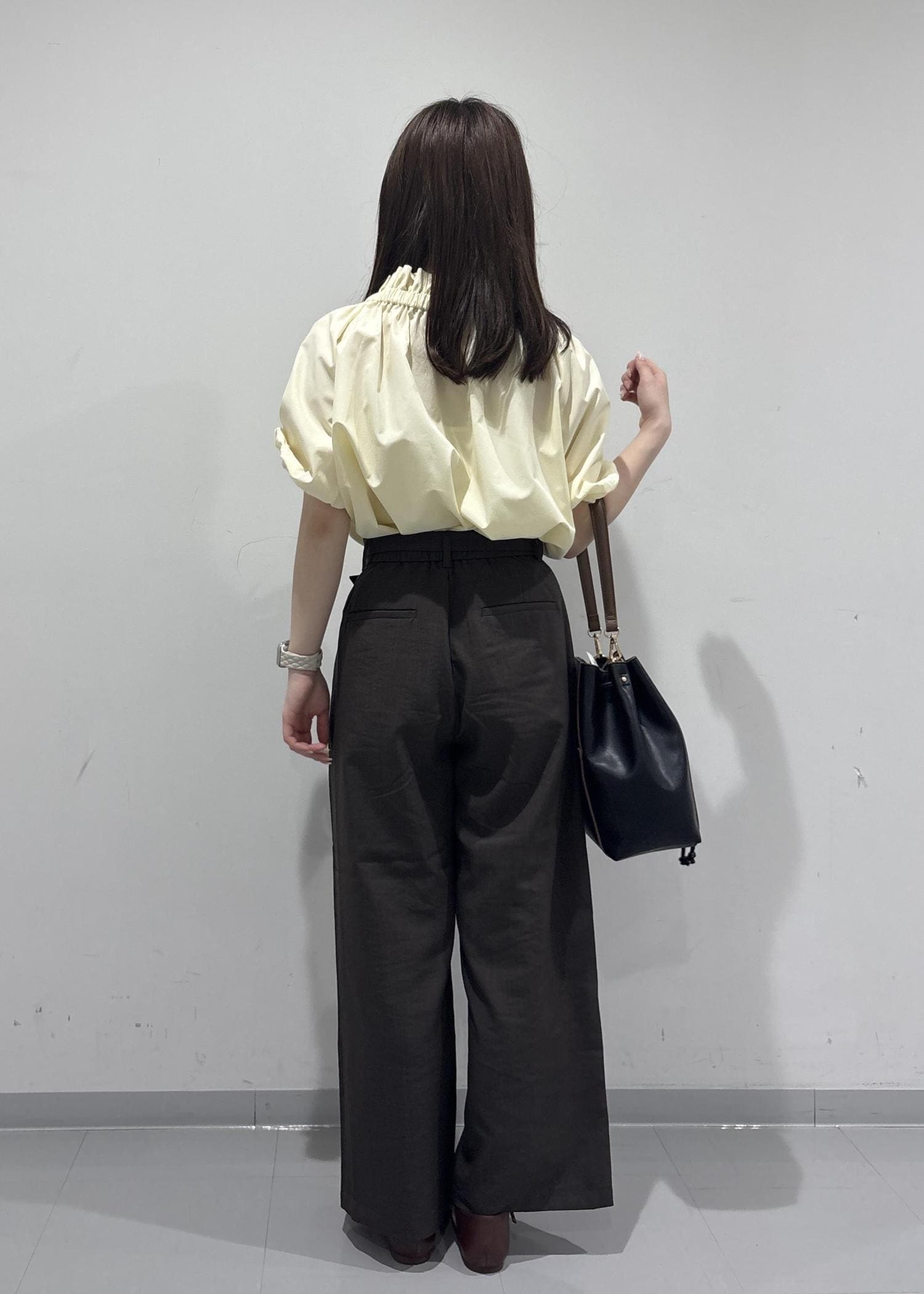 【cahoさんコラボ】低身長・小柄さんサイズ エアリーリネンライク タックワイドパンツ