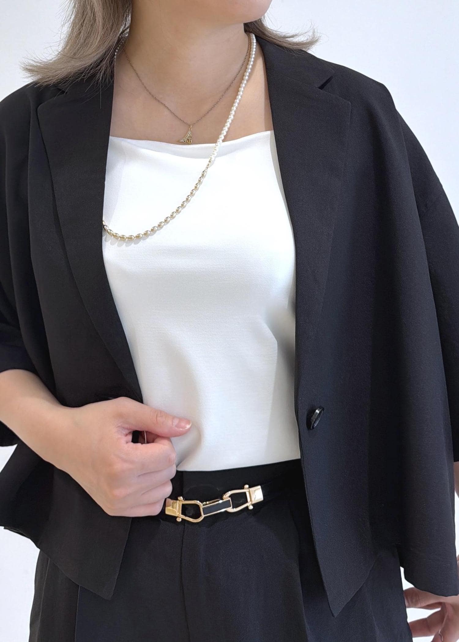 胸元が真っ直ぐなので鎖骨が綺麗に見えスッキリ着れます◎