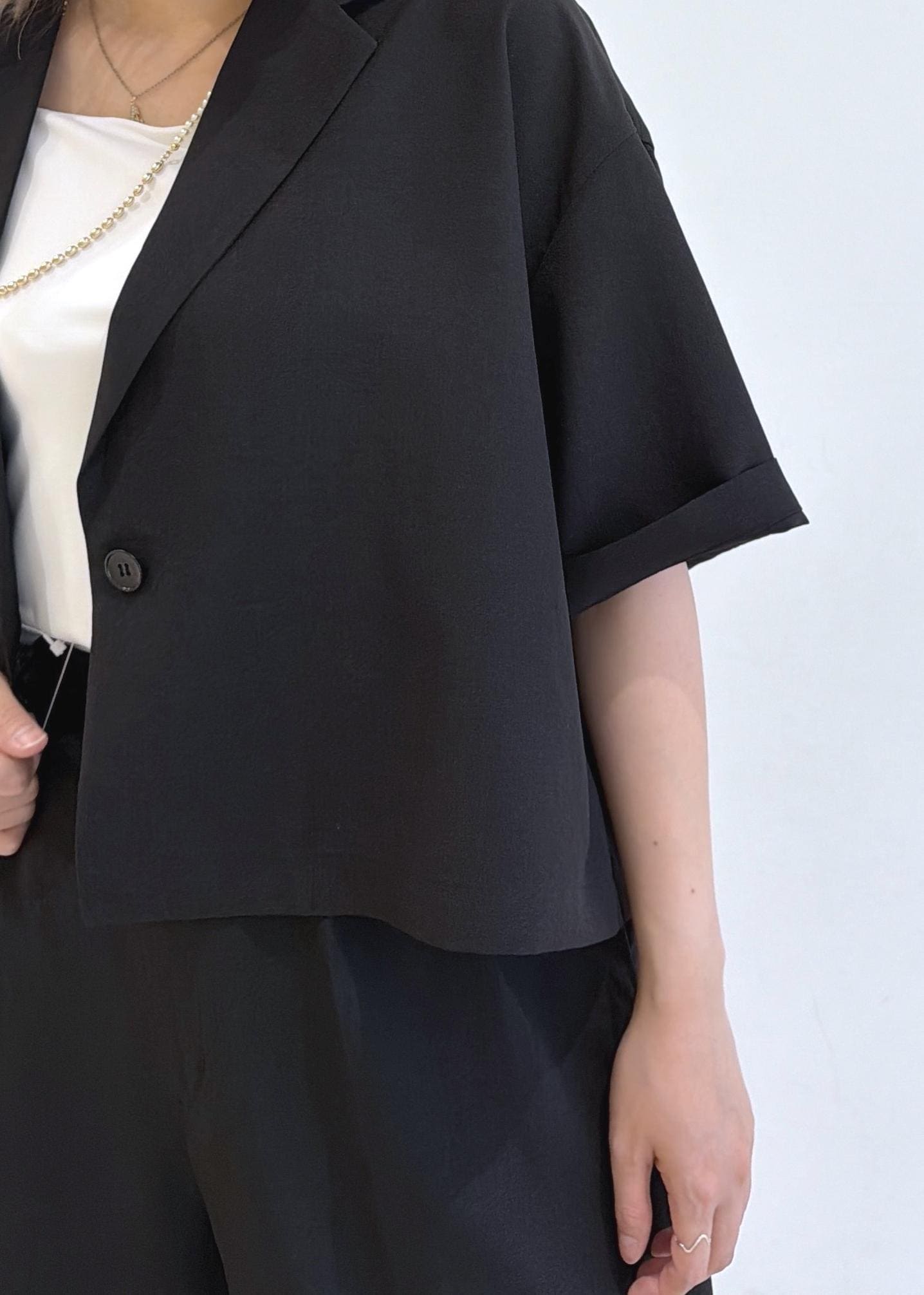 ROPÉ PICNICエアリーリネンライク ハーフスリーブジャケット/接触冷感・UVカット・速乾ブラック / F¥6,996レビュー156cmで腰くらいの丈感です!