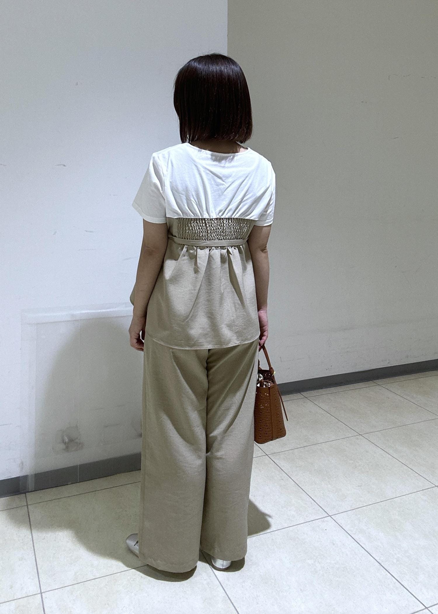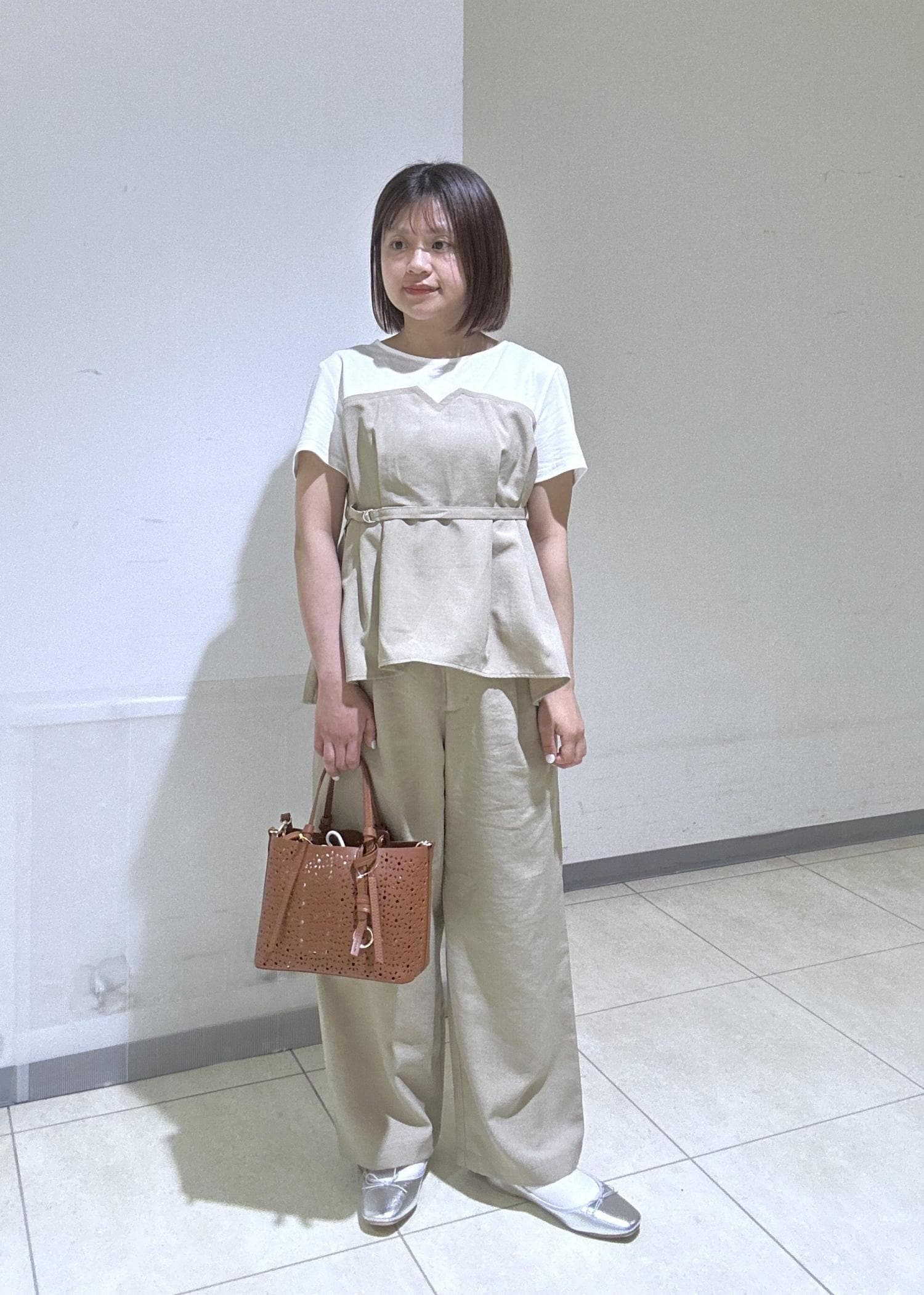 NEW!ROPÉ PICNIC【cahoさんコラボ】低身長・小柄さんサイズ エアリーリネンライク ドッキングカットトップスベージュ / F¥5,489レビューさらっとした着心地で丈感もちょうど良いです。