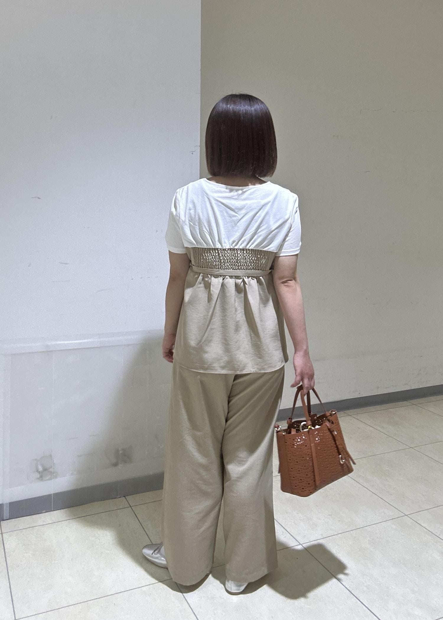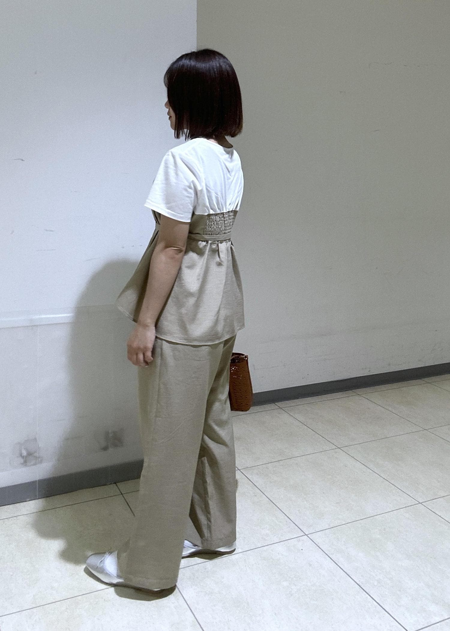 NEW!ROPÉ PICNIC【cahoさんコラボ】低身長・小柄さんサイズ エアリーリネンライク タックワイドパンツベージュ / S¥5,995レビューウエスト、丈感もピッタリでとても履きやすいです。