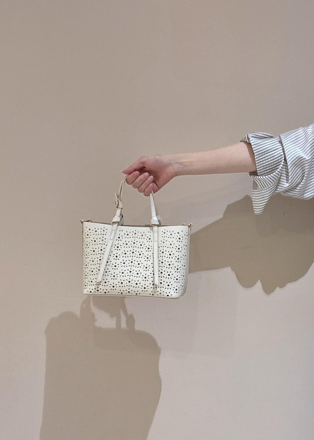 パンチングレースが軽やかな印象のミニショルダーバッグです。