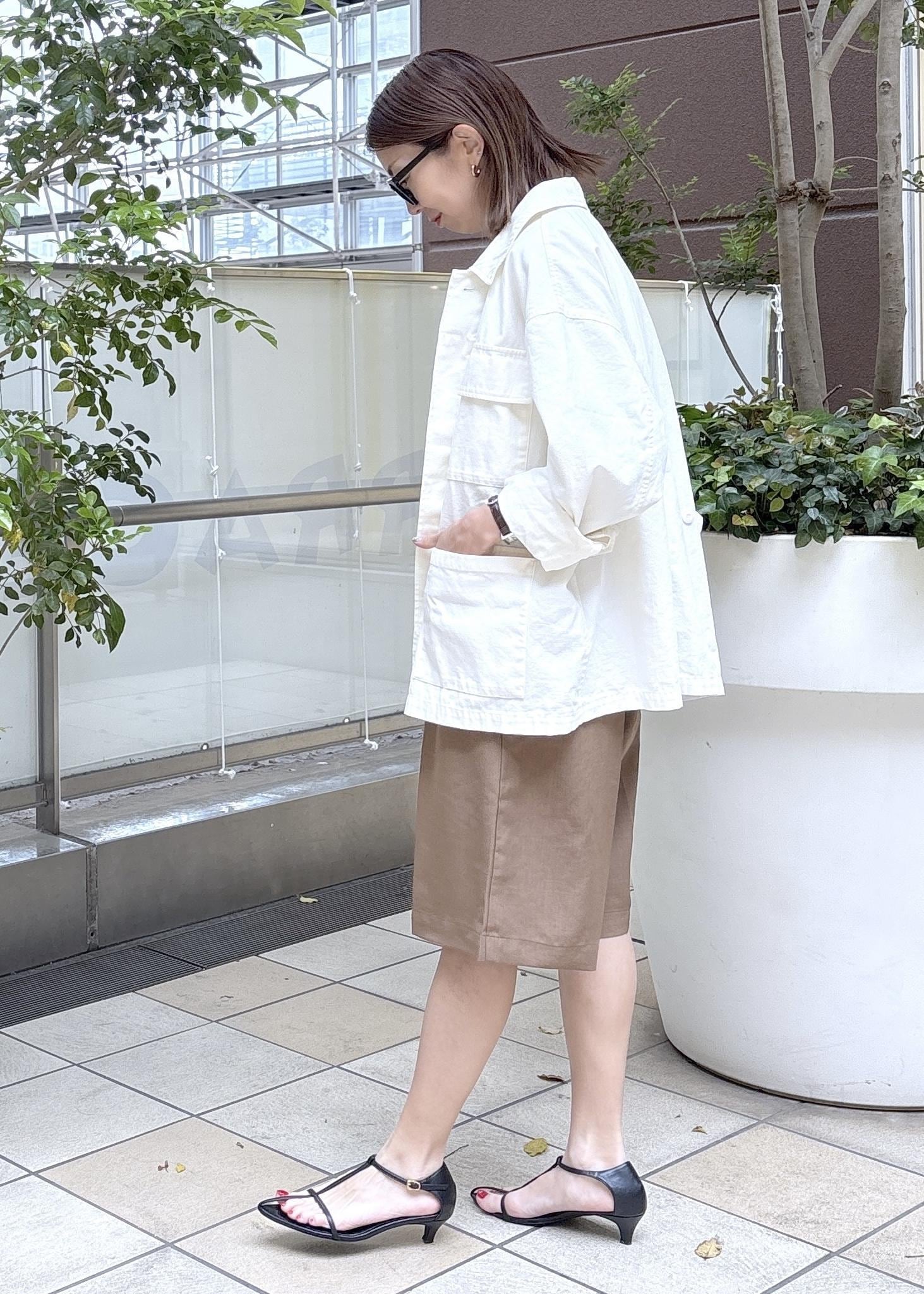 シャツジャケット感覚で羽織れるミリタリーアウター、軽やかで大人カジュアルな印象