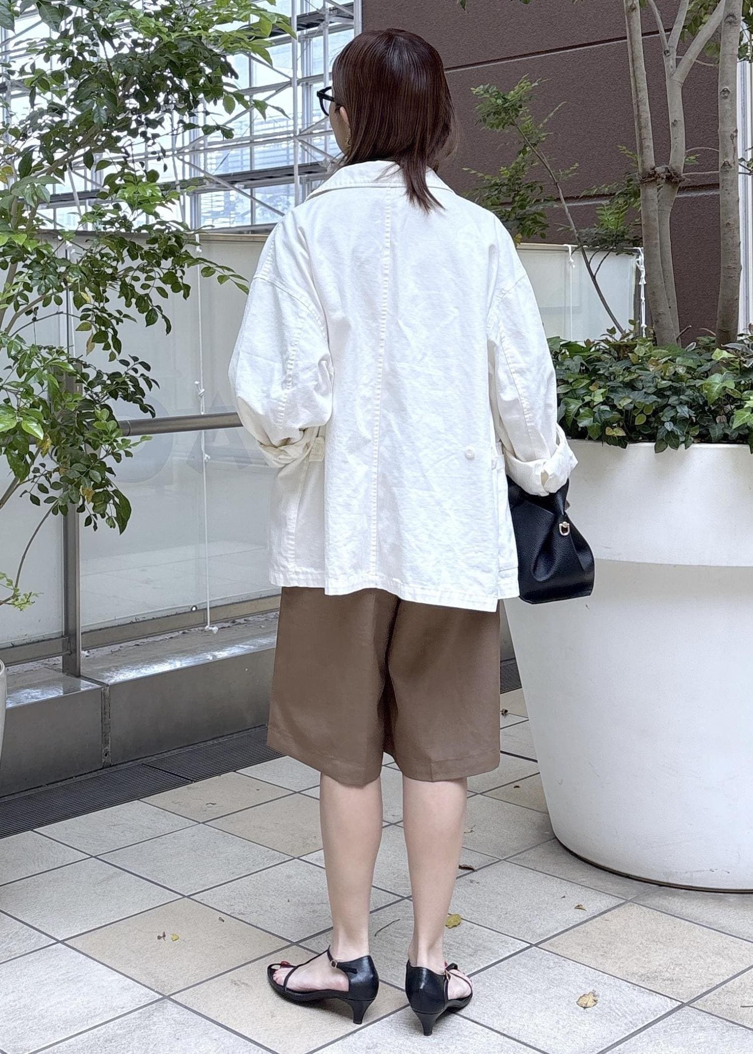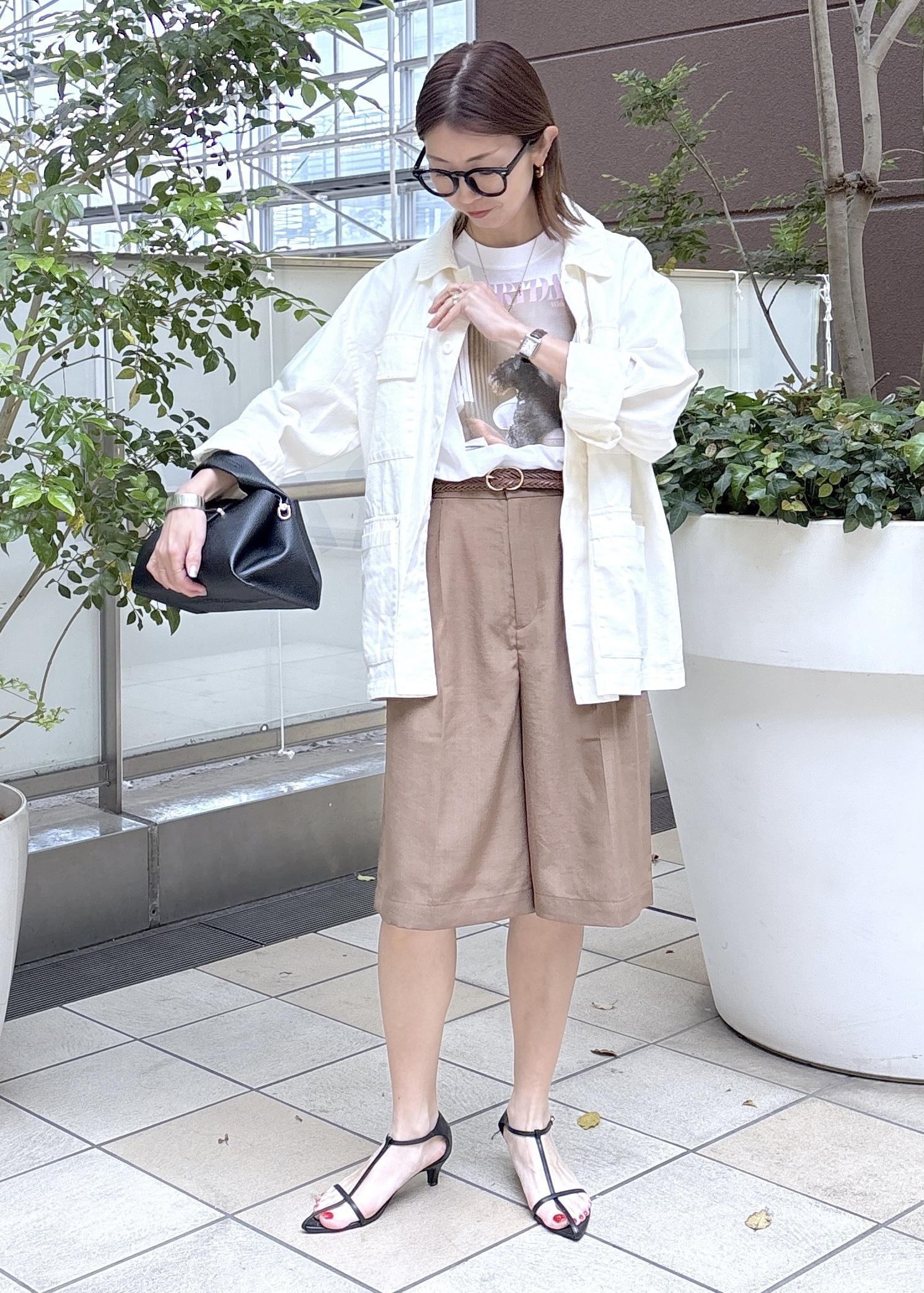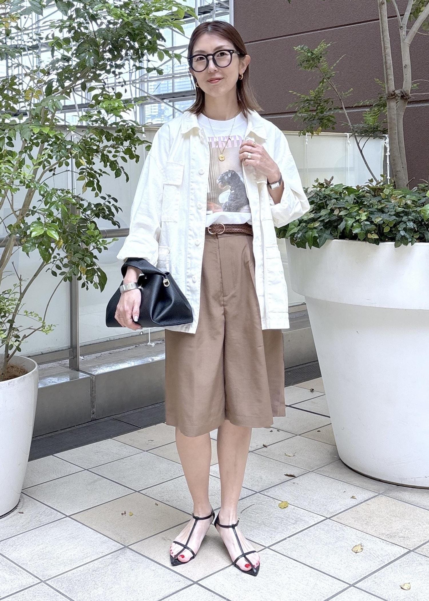 大人が挑戦しやすいシンプルなハーフパンツスタイリング。
