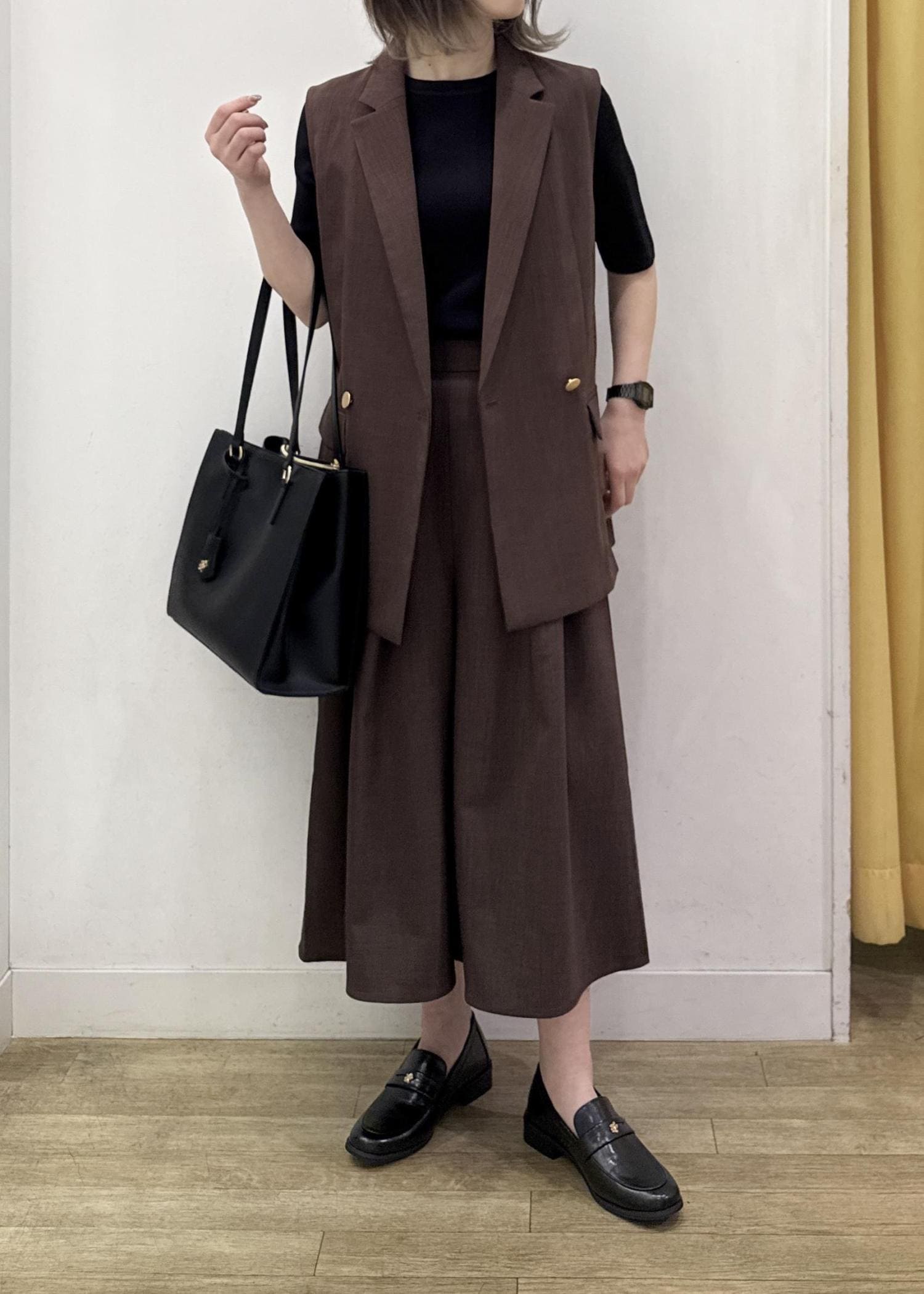 ROPÉ PICNICカナパ スリーブレスジレ/セットアップ対応・UV・抗菌防臭・接触冷感ダークブラウン / F¥6,996レビューヒップをカバーできる着丈で、ゆったりとしたサイズ感です。