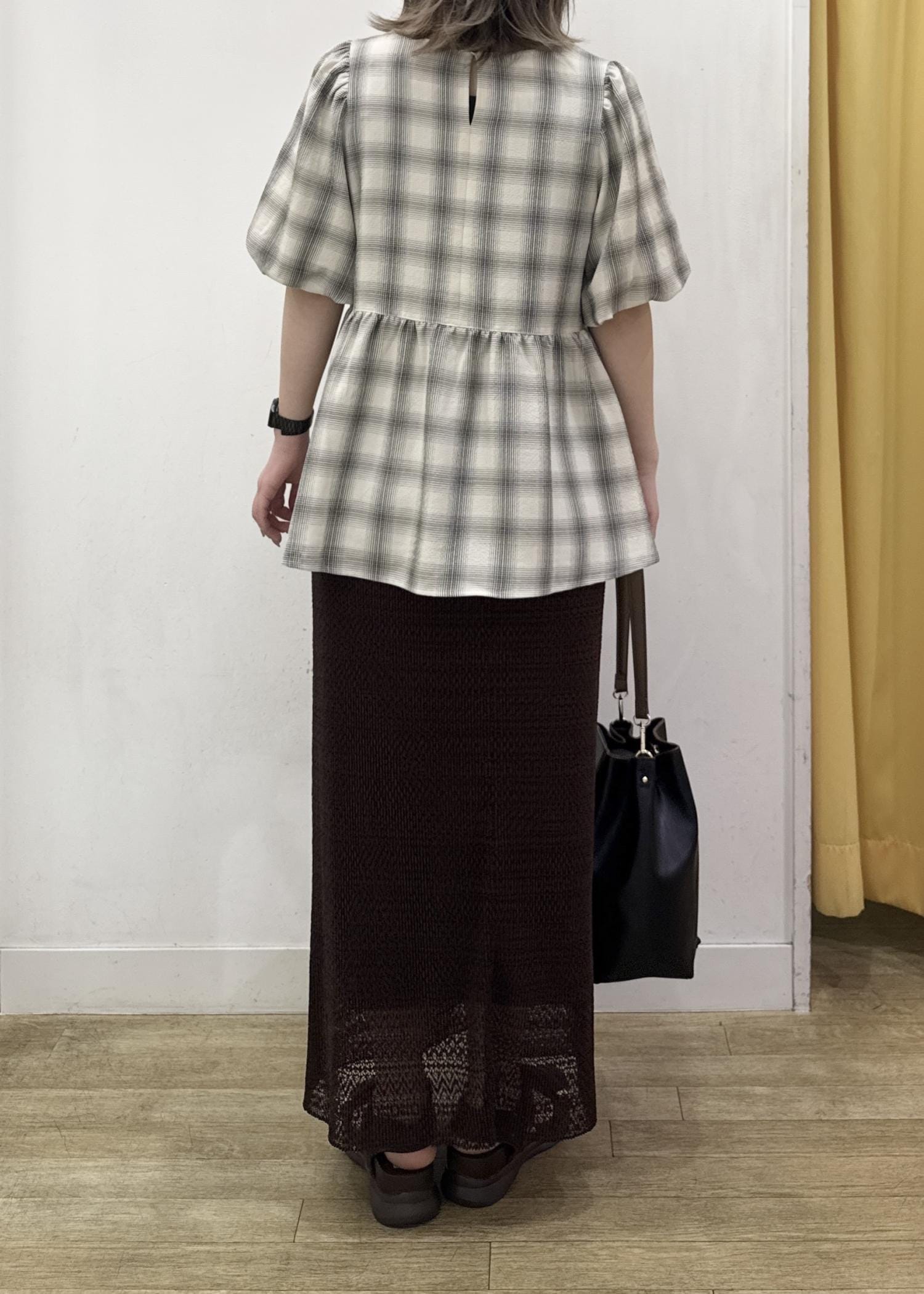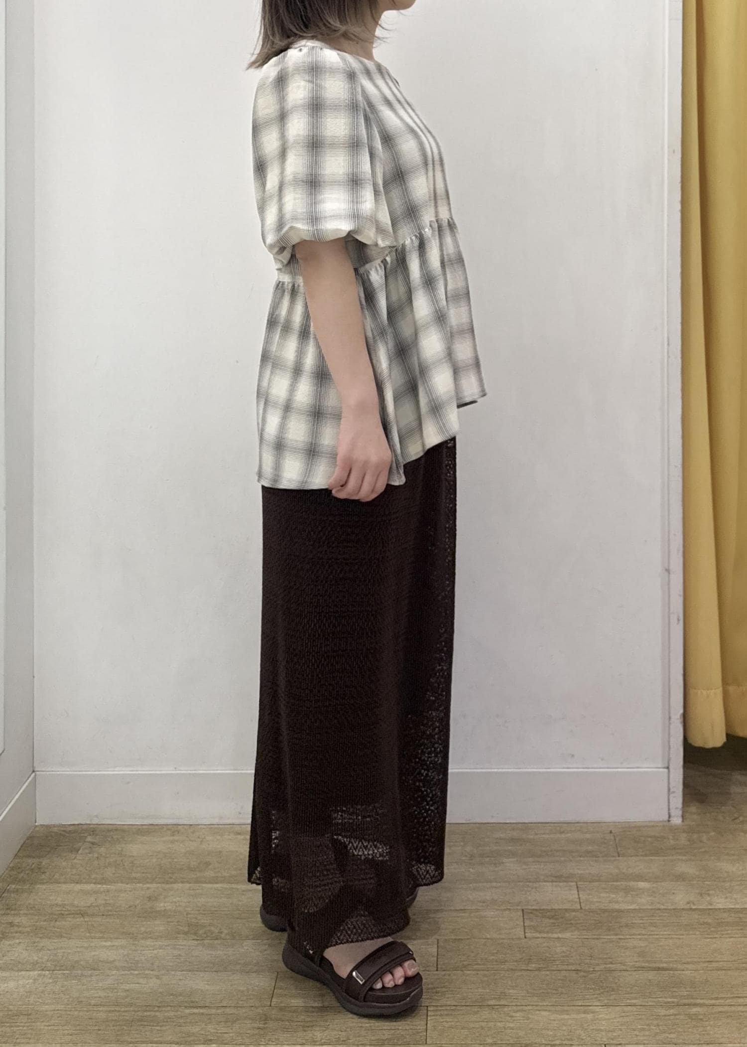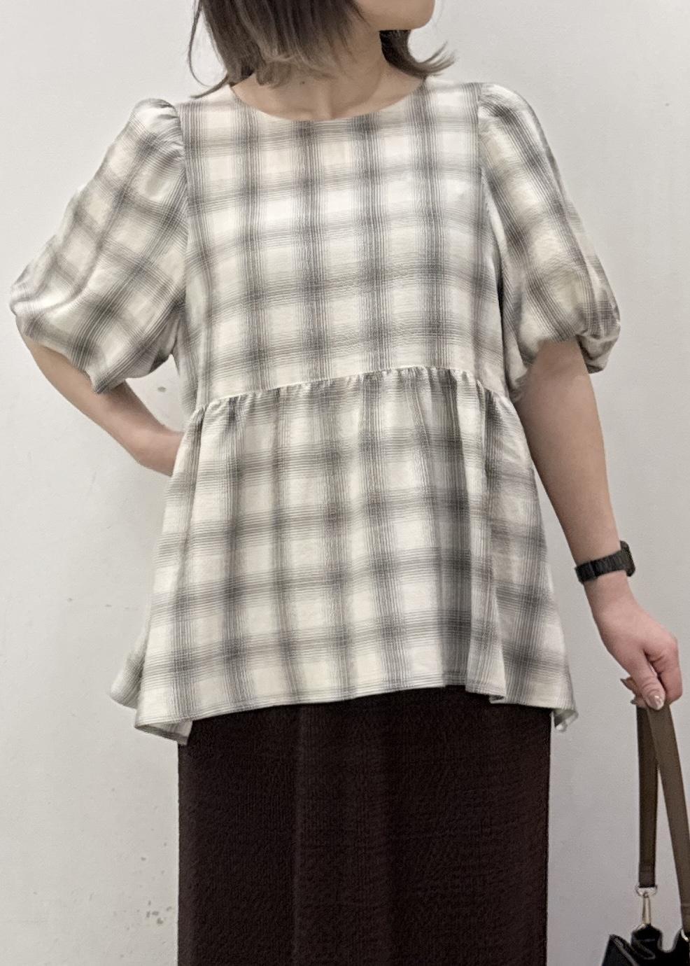 ペプラムシルエットでヒップをカバーしつつ、お袖のふんわりシルエットが二の腕もカバー!