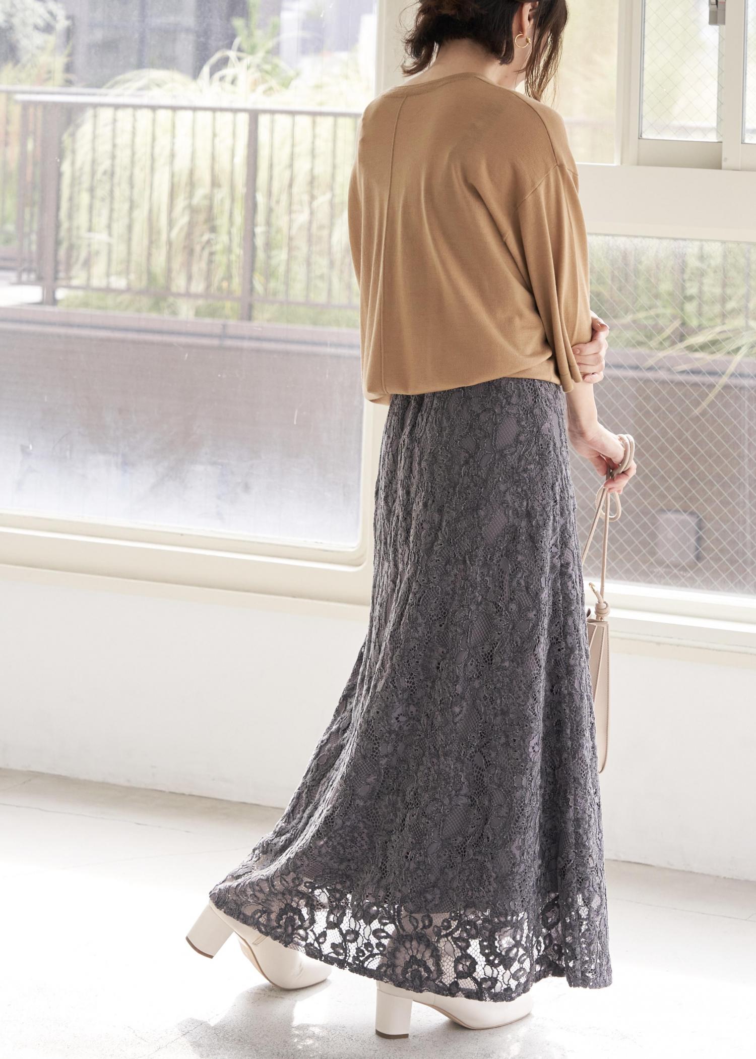 繊細なemurのレーススカートにウールTシャツとブーツをあわせて シンプルに。 ウールのTシャツは柔らかくて暖かい、程よいサイズ感もお気に入りです。 足元はトレンドの白ブーツで軽やかに。