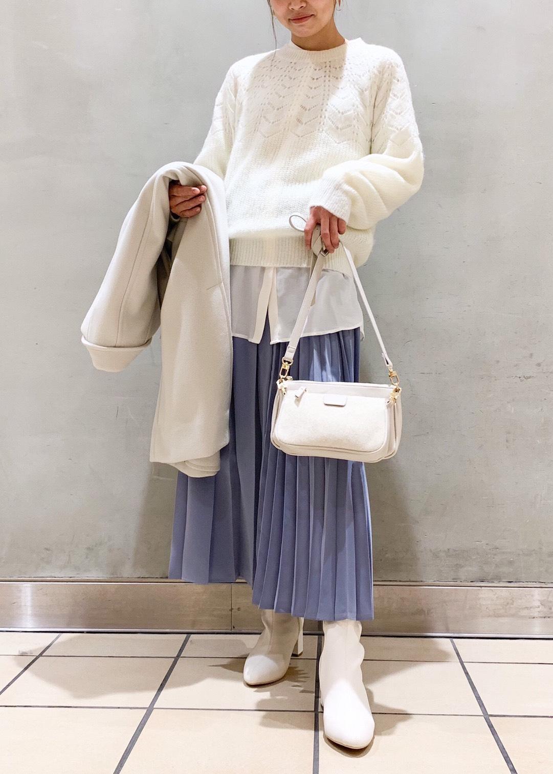 ホワイトを基調に柔らかいブルーを合わせたコーディネートです。