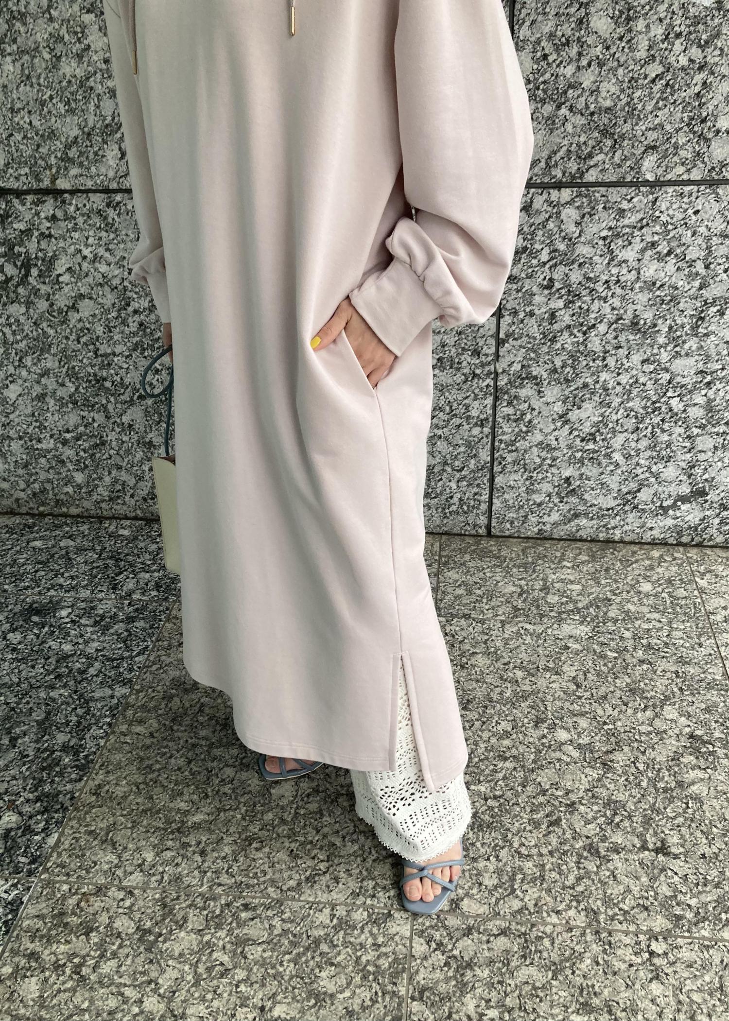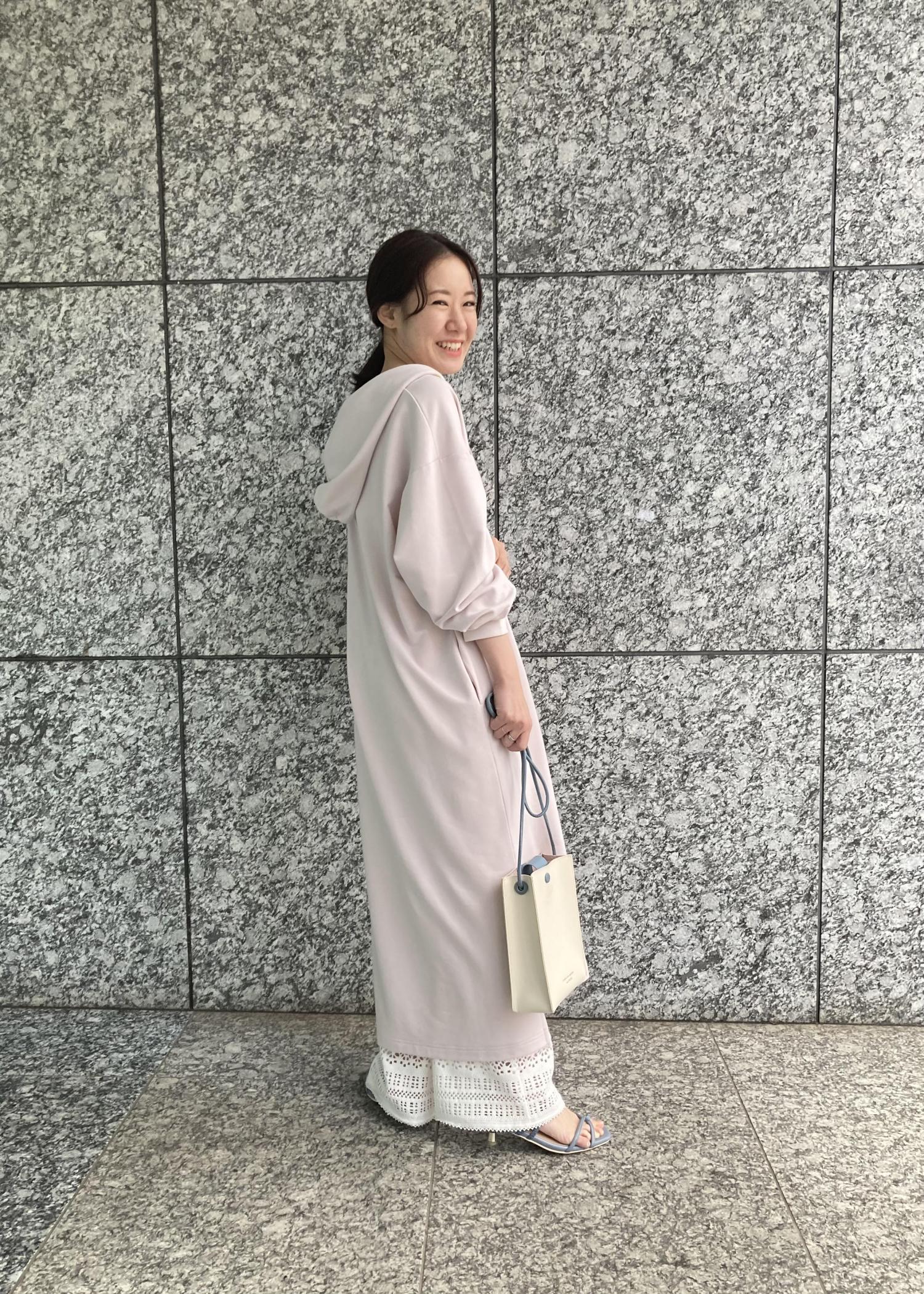 ゆったり感が可愛いスウェットワンピを、お出かけ用にスタイリングしました。
