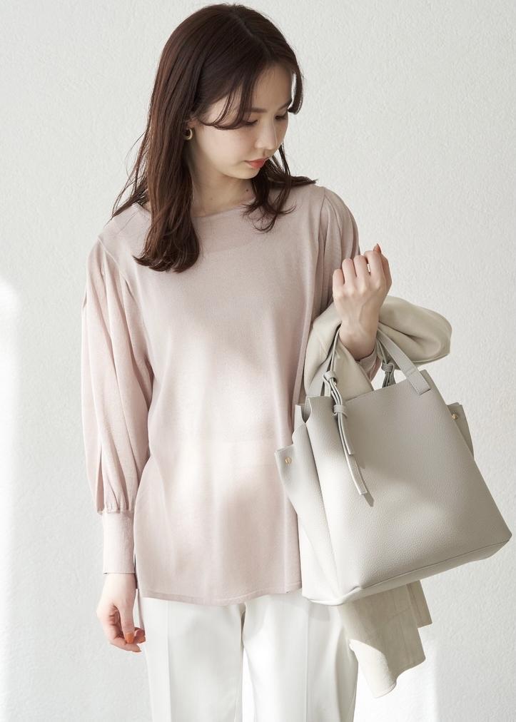 シンプルすぎないようにトップスはシアー感のあるニットを合わせ、さりげなくトレンド感も出しました。