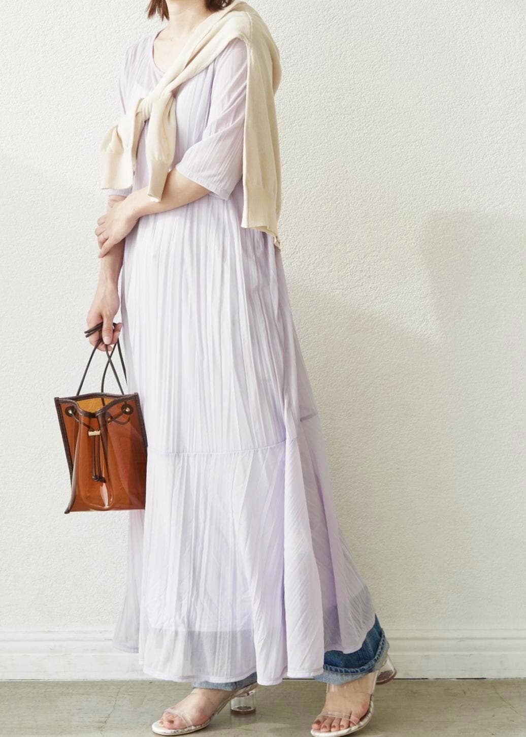 柔らかいラベンダーカラーのシアーワンピ×デニム