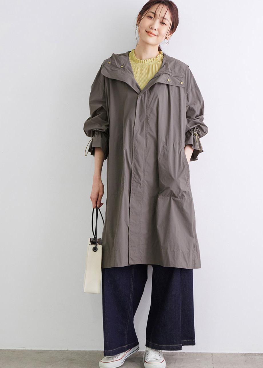 イエローのブラウスの甘さをスポーティなライトアウターでカジュアルアップ。