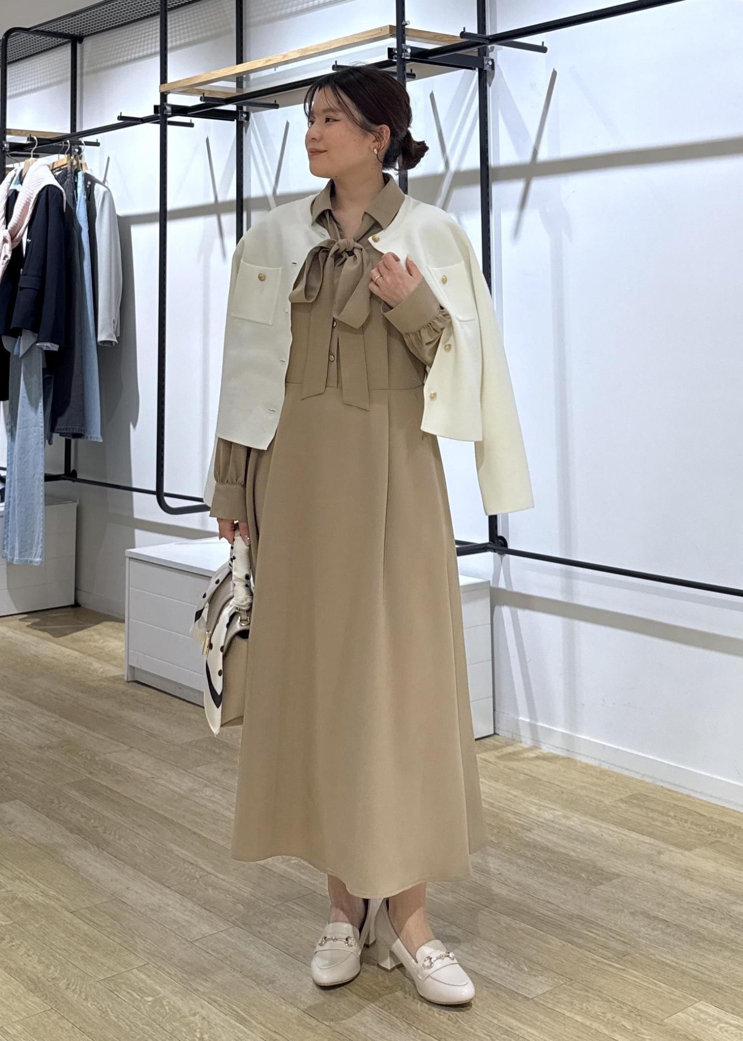 シンプルにパンツ合わせも可愛いですが、スッキリ目のロング丈スカートと合わせて甘めなコーデもオススメです◎