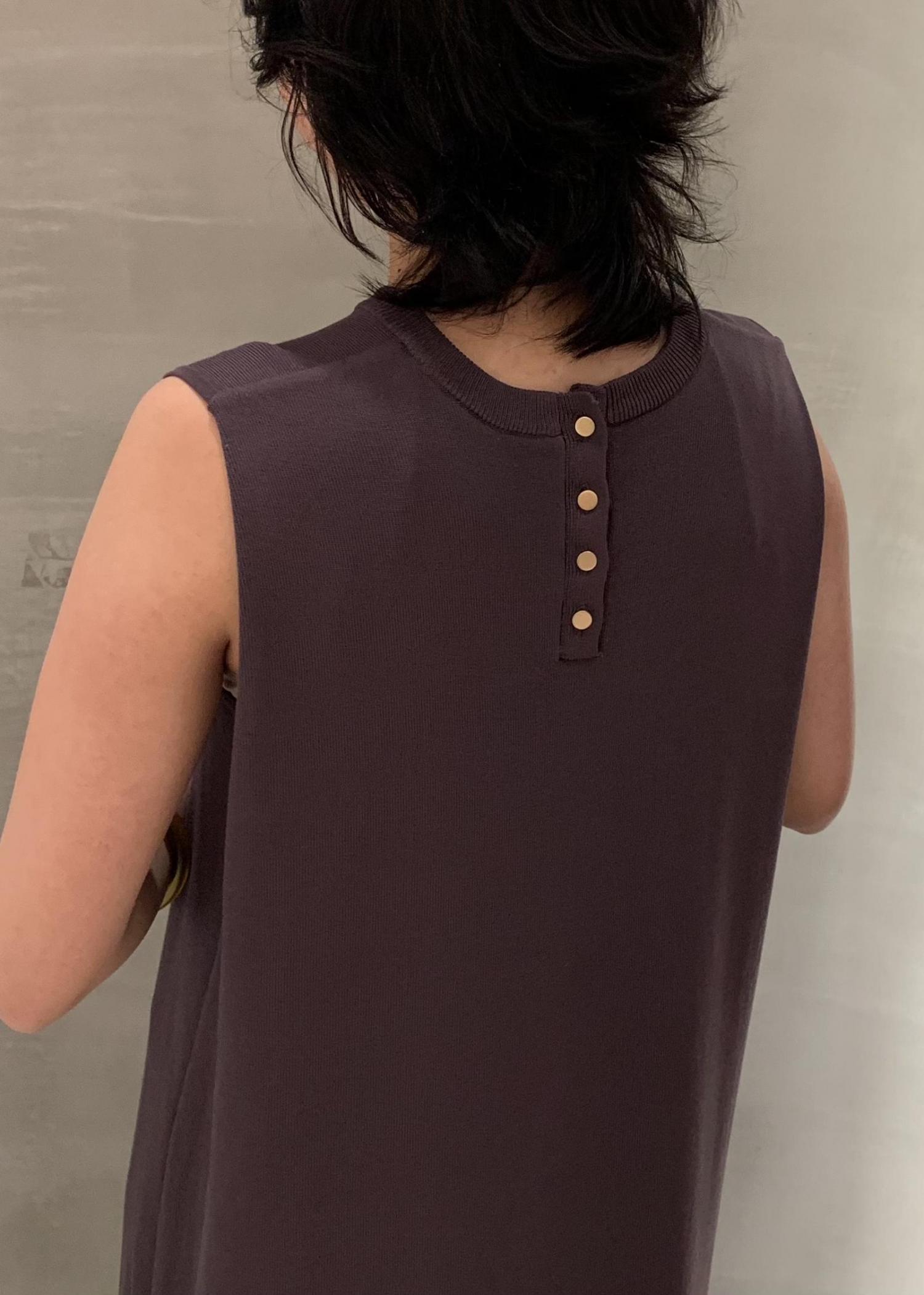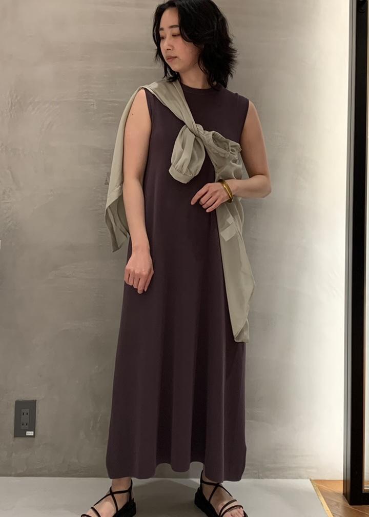 夏まで活躍するノースリーブニットワンピ☺︎! 肩のタックが立体感が出て、二の腕カバーできているので一枚で楽ちんに着れるワンピース♡ 後ろ襟のボタンがさりげないワンポイントになってます! オススメはシアーシャツなどの透け感あるアイテムの羽織や、カーディガンなどを羽織って今から、夏まで着れるアイテムです☺︎
