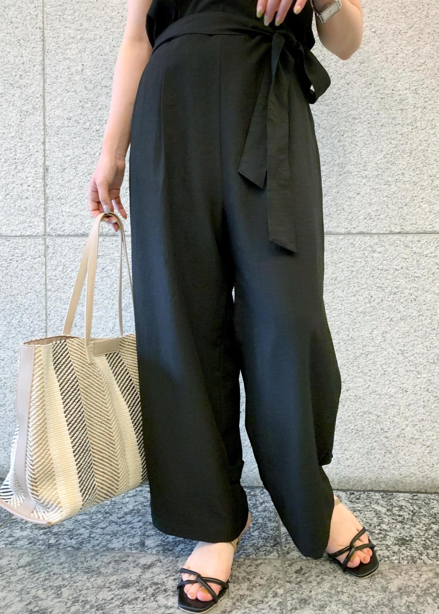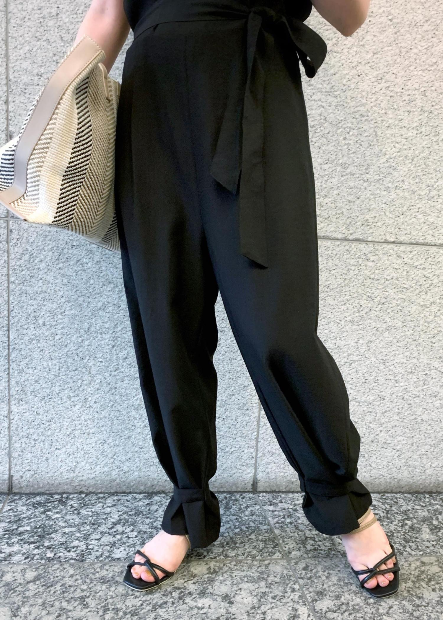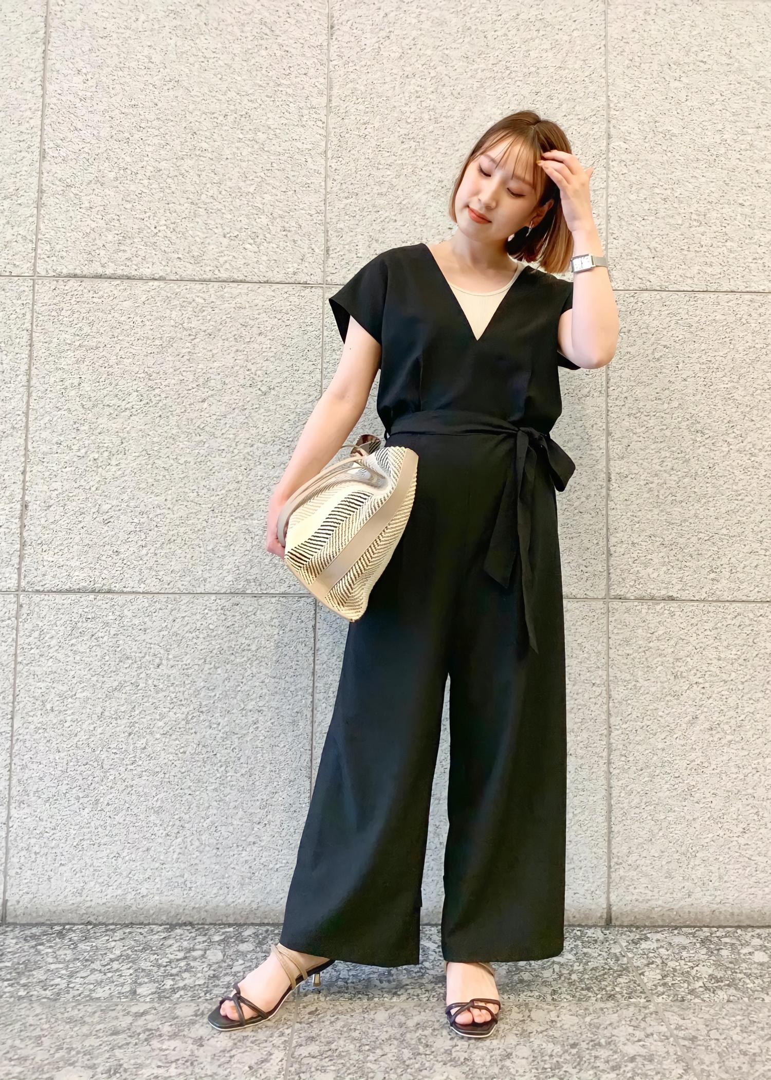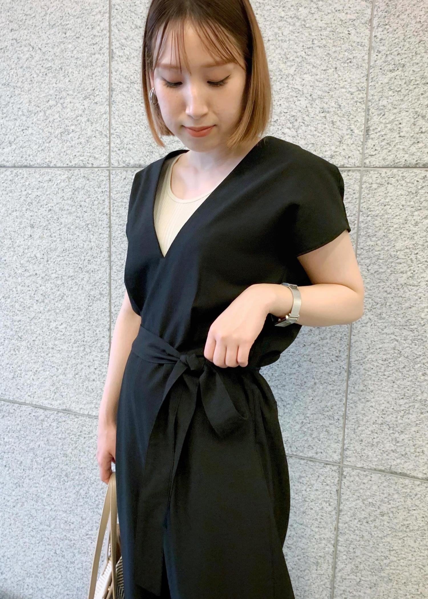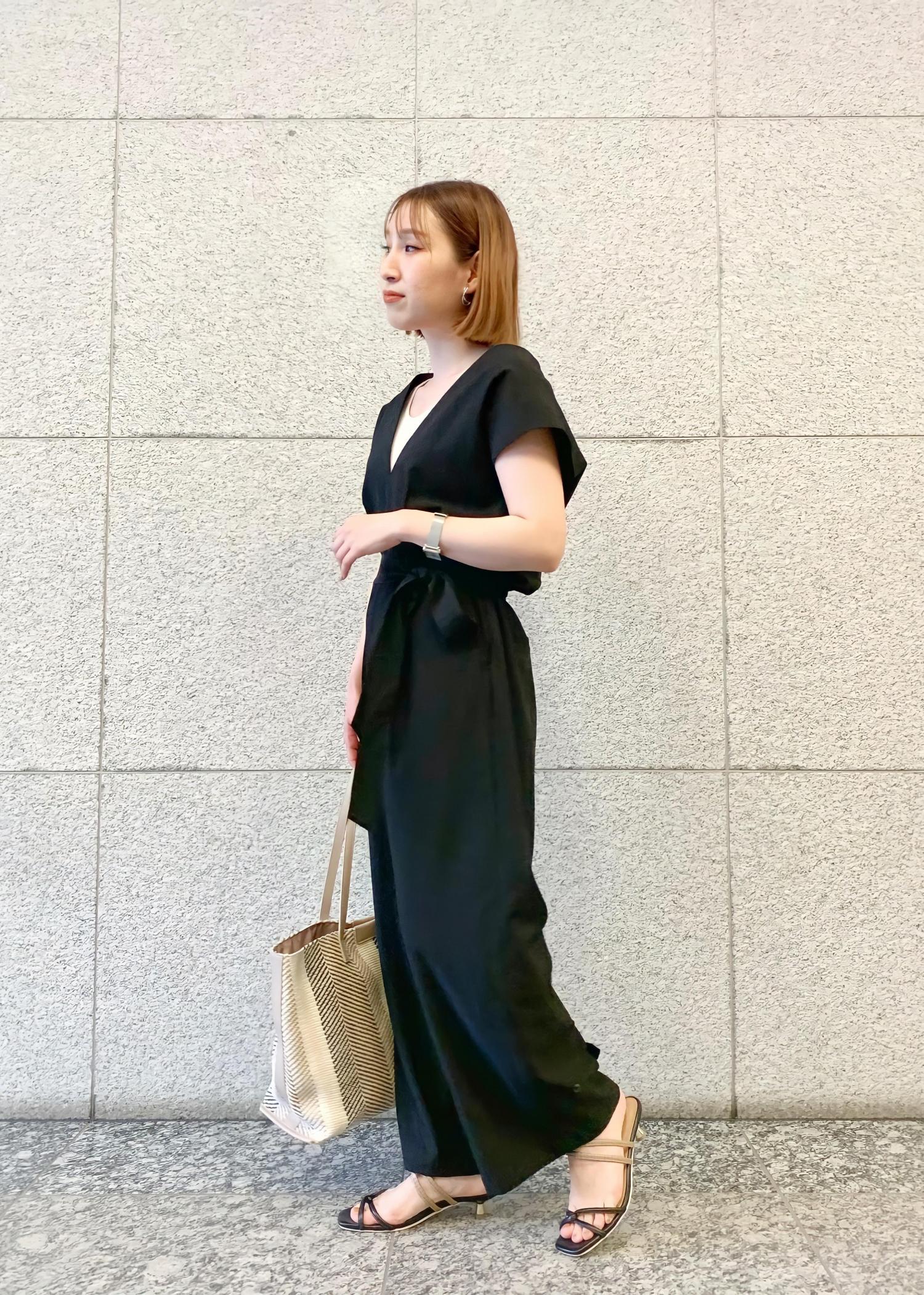 裾のシルエット変化が楽しめるオールインワンです。 シンプルな分、合わせるインナーや雑貨でも雰囲気ががらっとかわるので、色々なスタイリングが楽しめます。