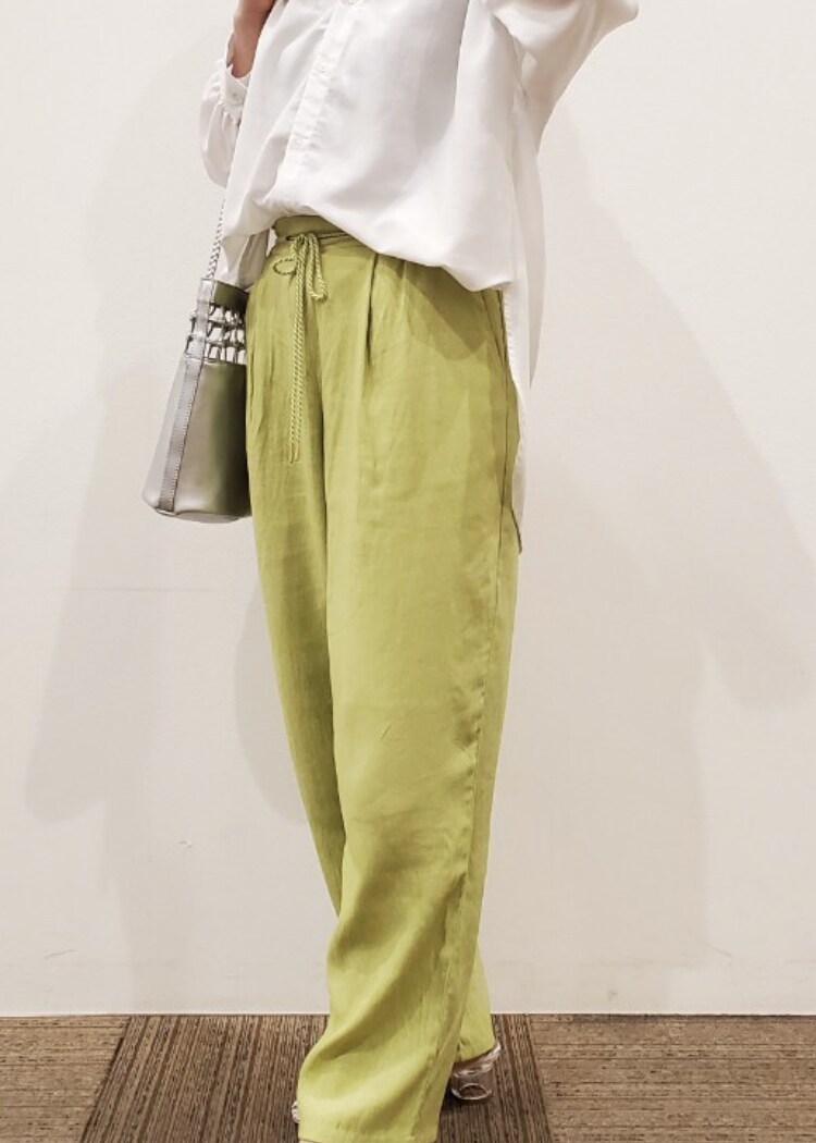 トレンド感のあるピスタチオカラーが入荷しました。白のブラウスで爽やかで初夏らしいコーデにしてみました。