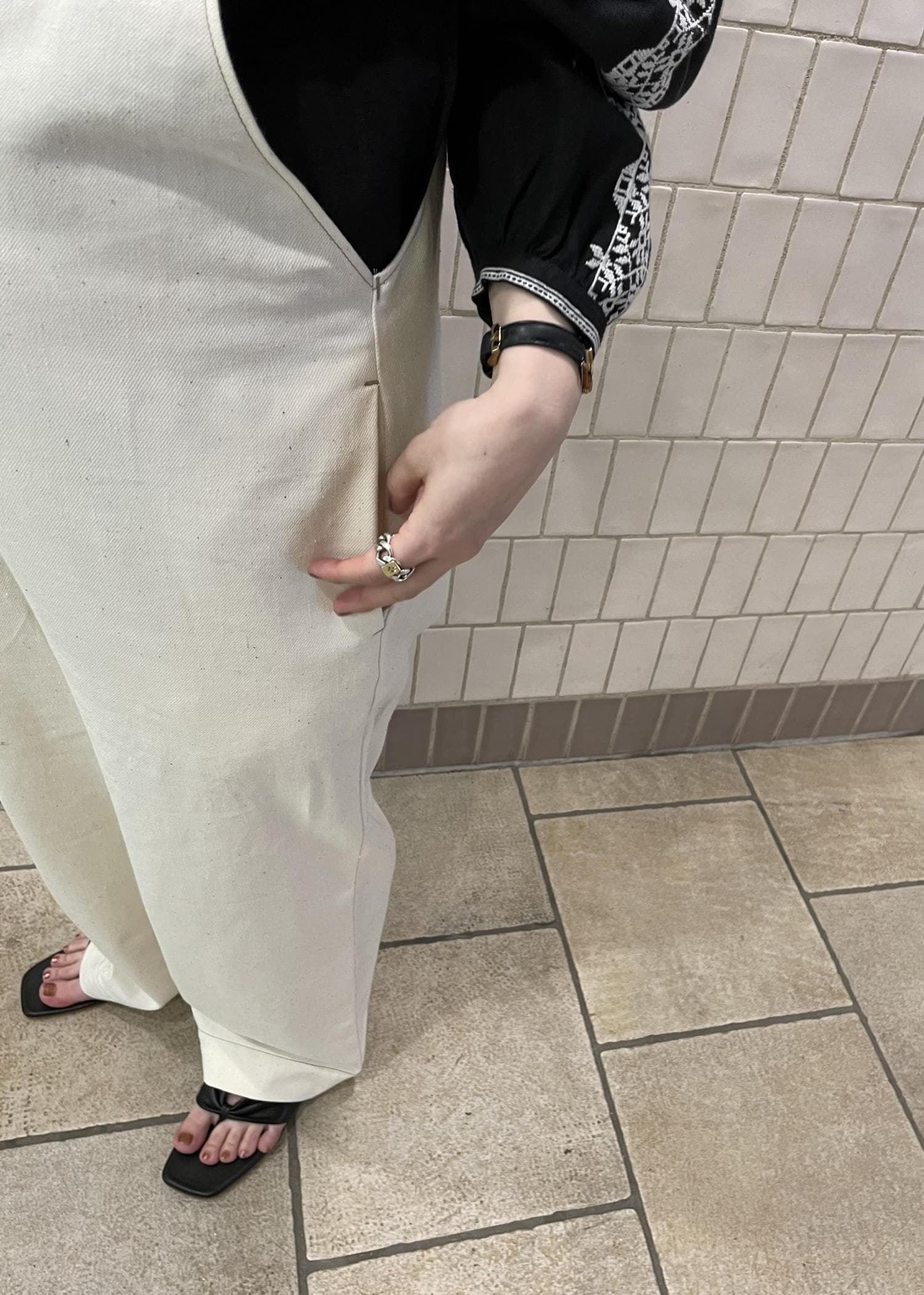こちらのサロペットは、ラム糸を使用しており柔らかい素材で着心地抜群です◎ ウエスト切り替えがないので、スッキリとシンプルなデザインで子供っぽくならず着て頂けます! また、妊婦8ヶ月なのですがお腹に余裕もあり楽ちんで過ごせますので妊婦さんにもおすすめです!