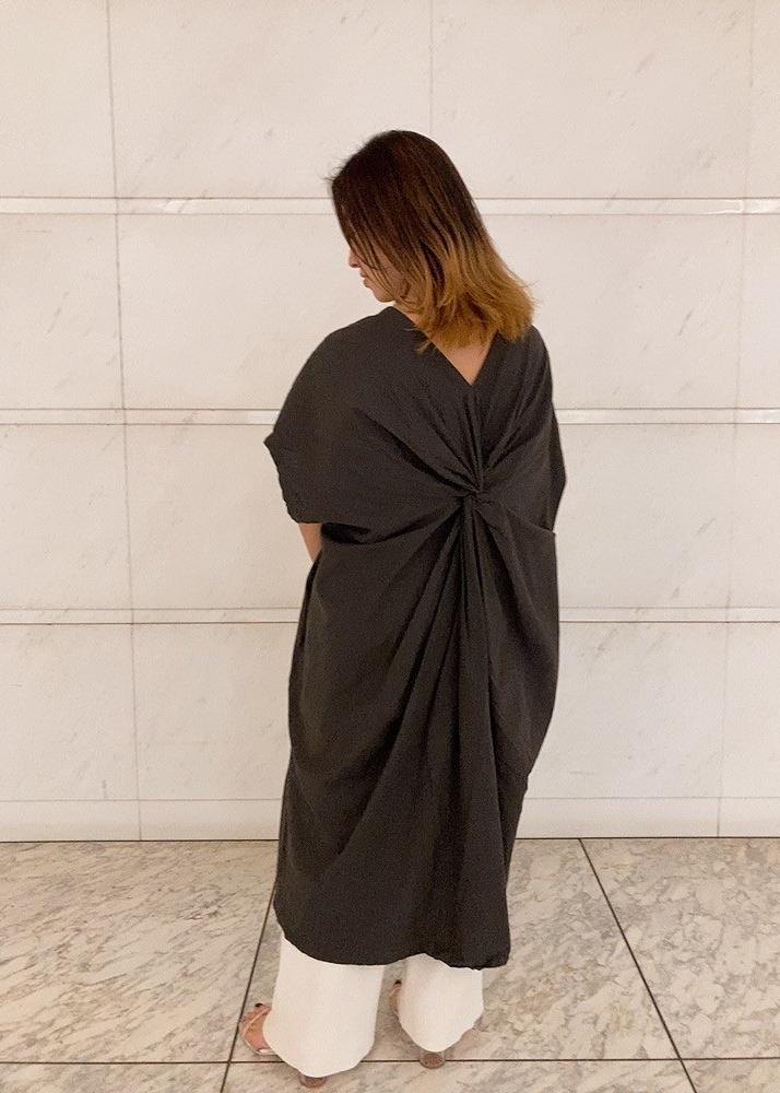 ワンピースはロング丈ですがサイドスリットがありスッキリとした印象になりますし、パンツはセルフカットが可能なので低身長の方にもオススメです。