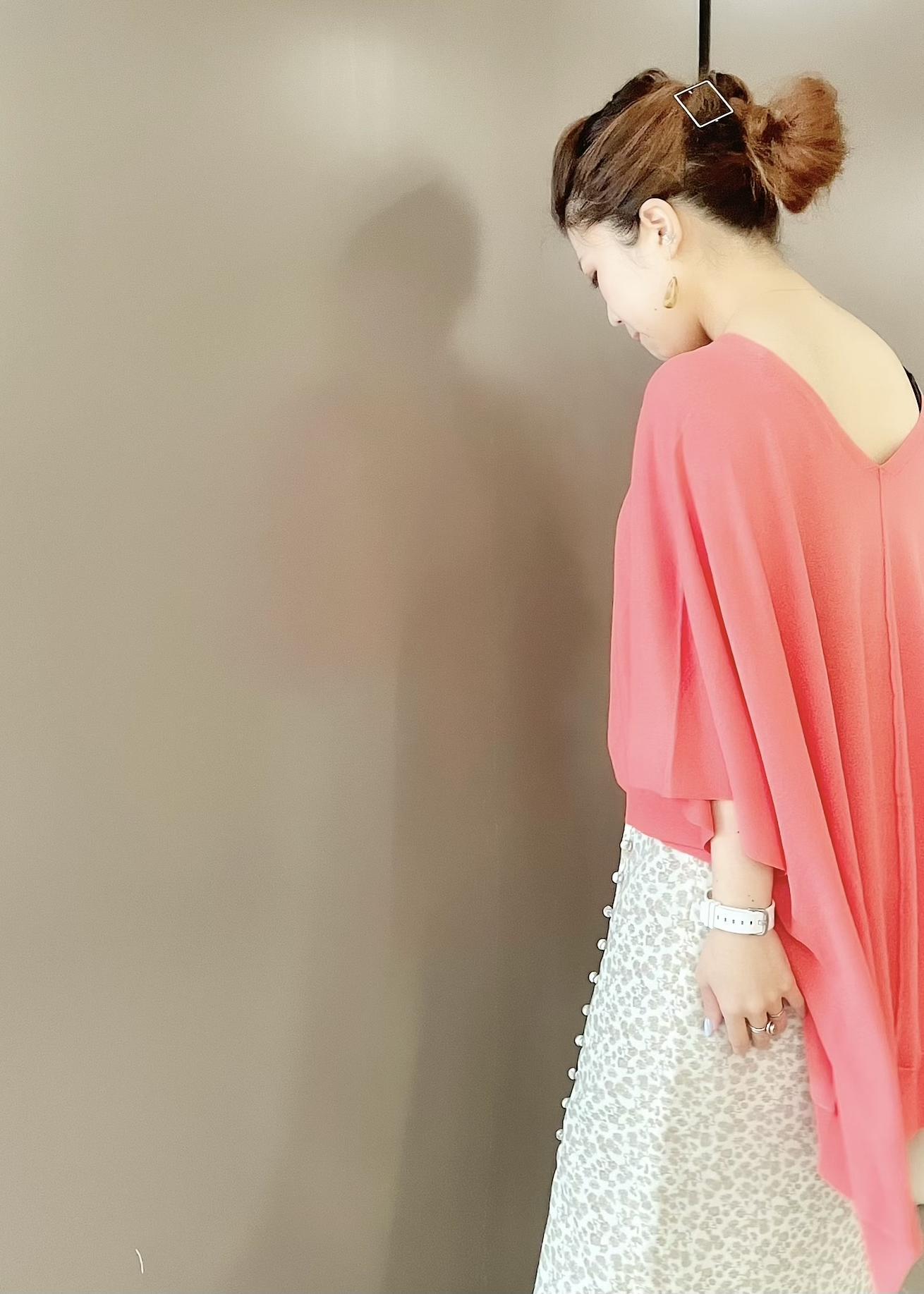 足元を上品なストリングサンダルで合わせる事でトップのボリュームに目が行くようにしています・:*+.