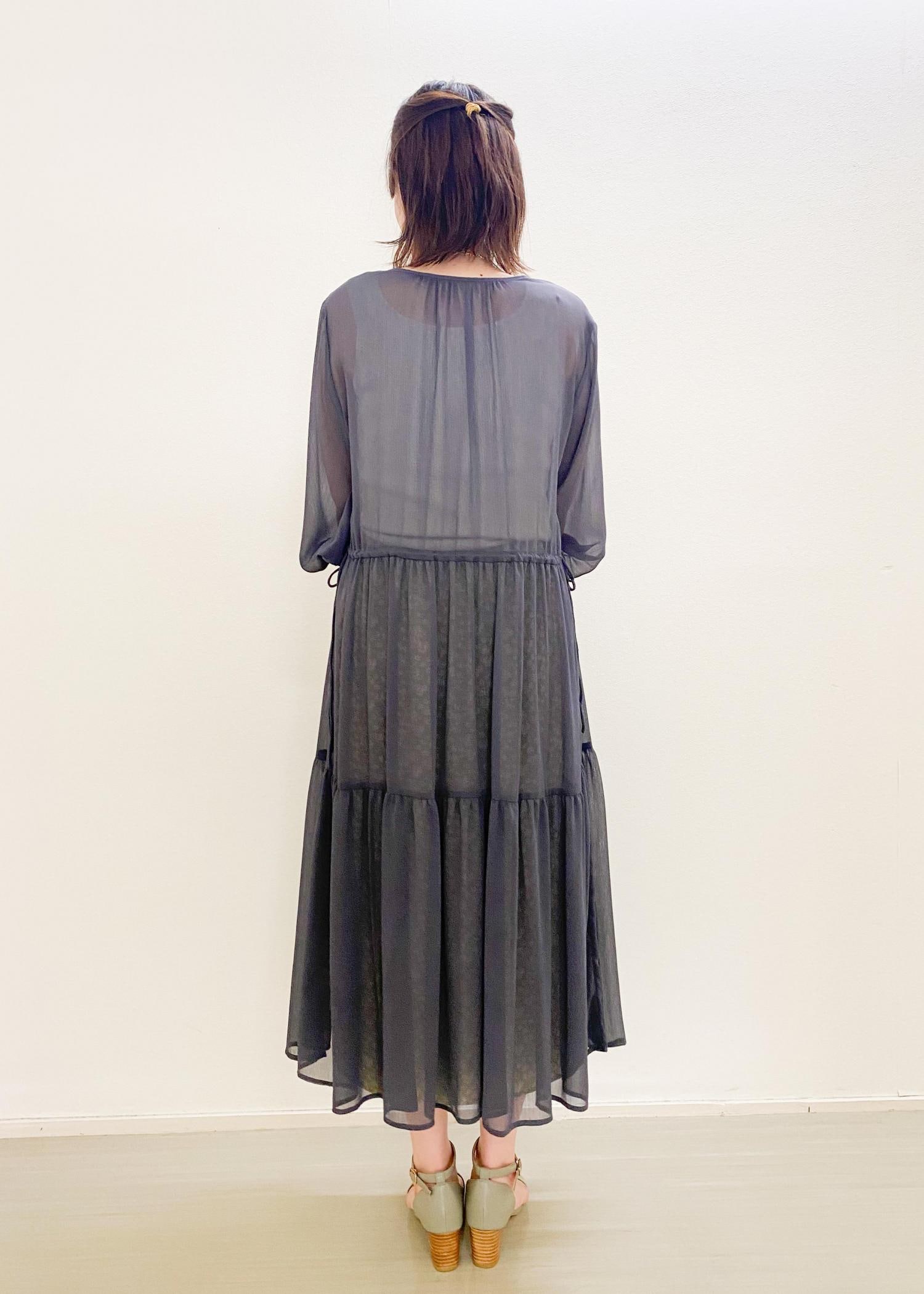 シアー素材のワンピースをガウンとして羽織り、大人っぽい落ち着いた雰囲気を出してみました♪