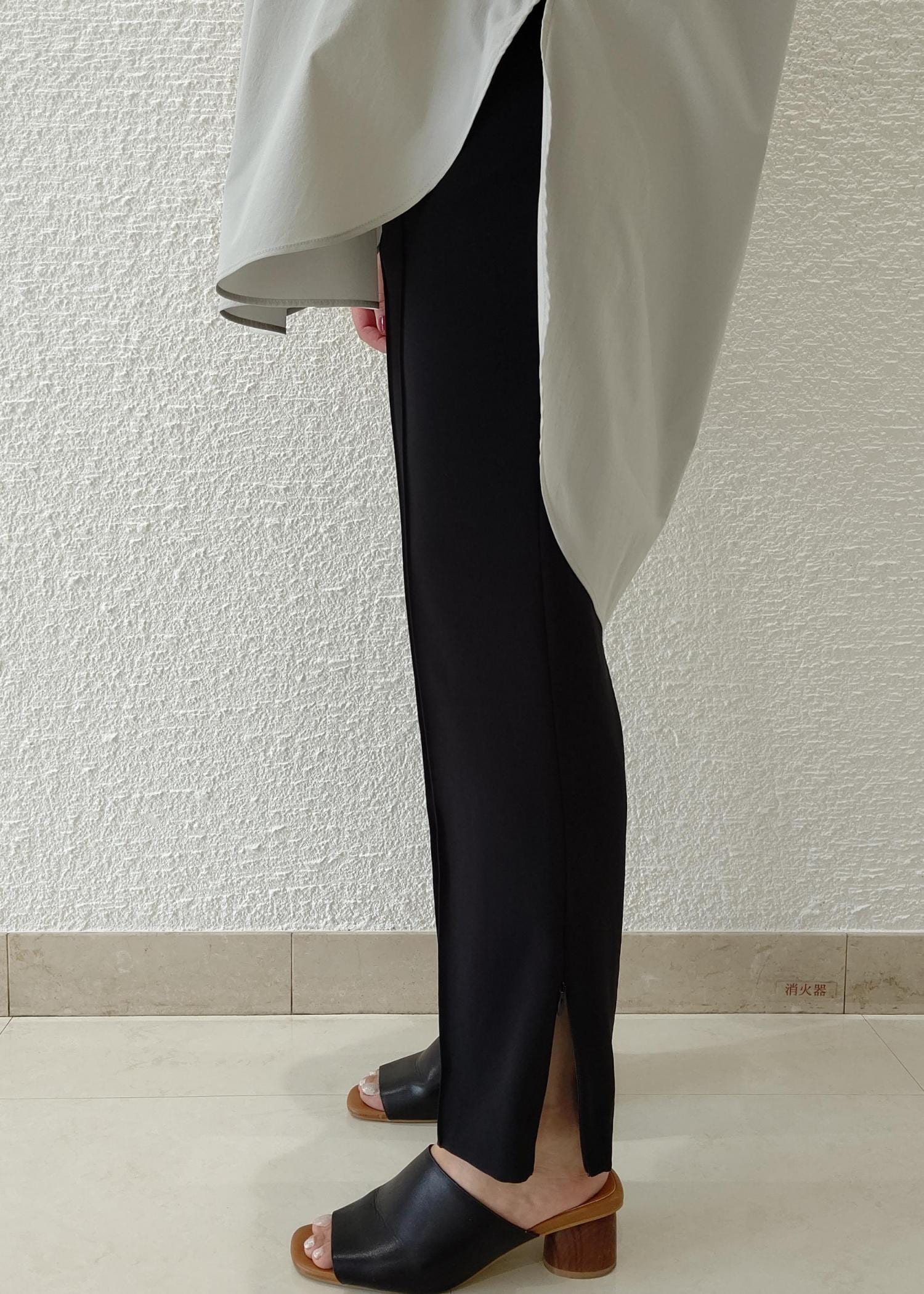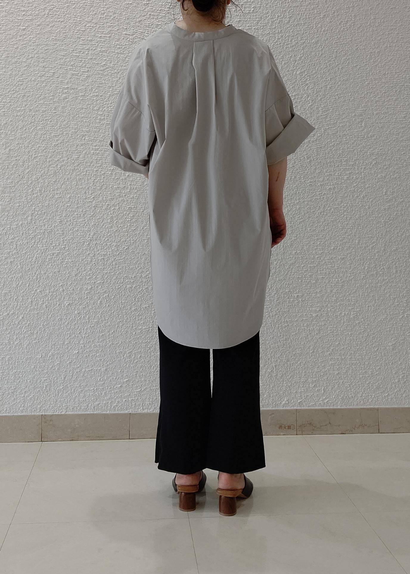 スッキリとしたラク美パンツにチュニックシャツを合わせたカジュアルコーデです。