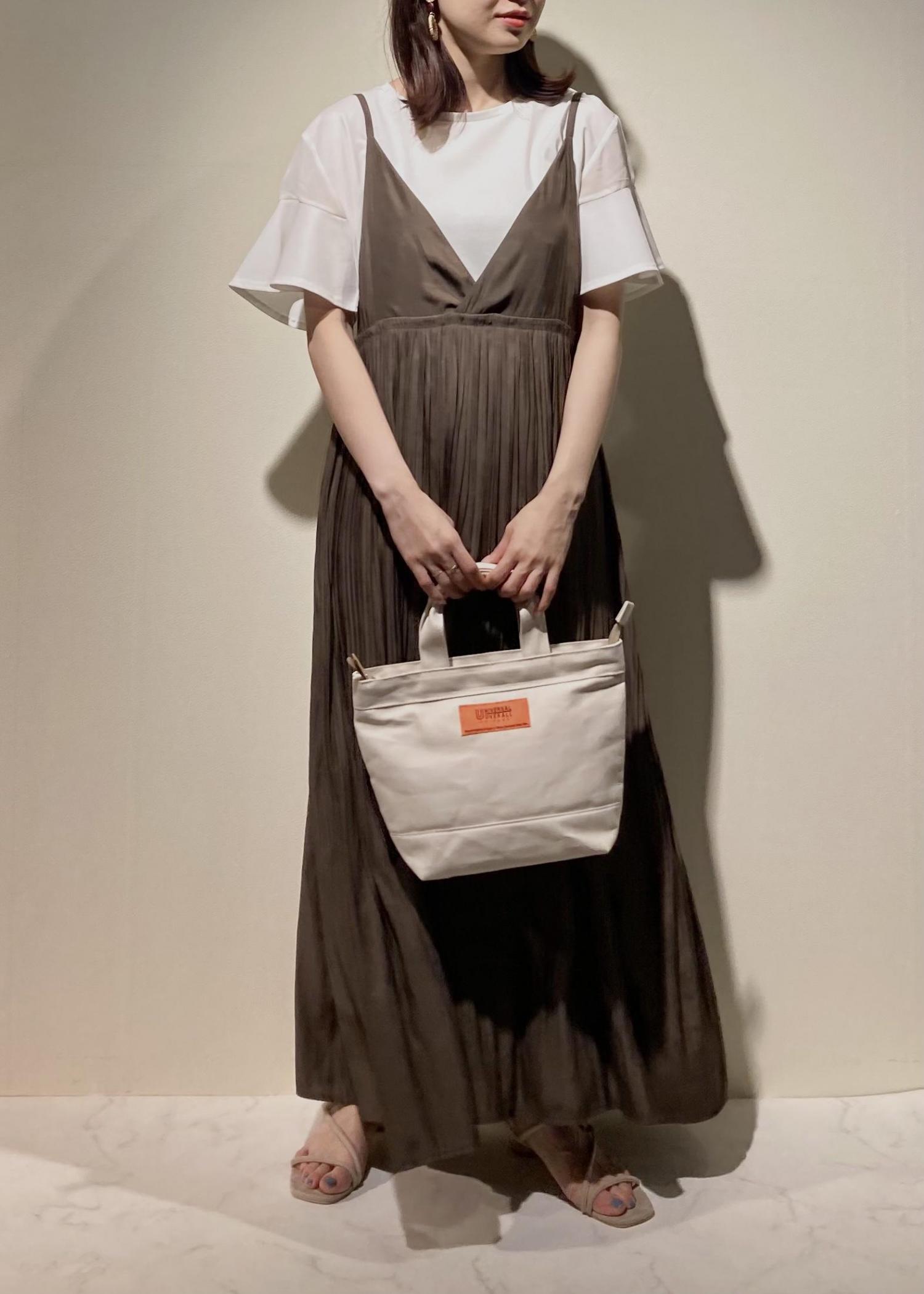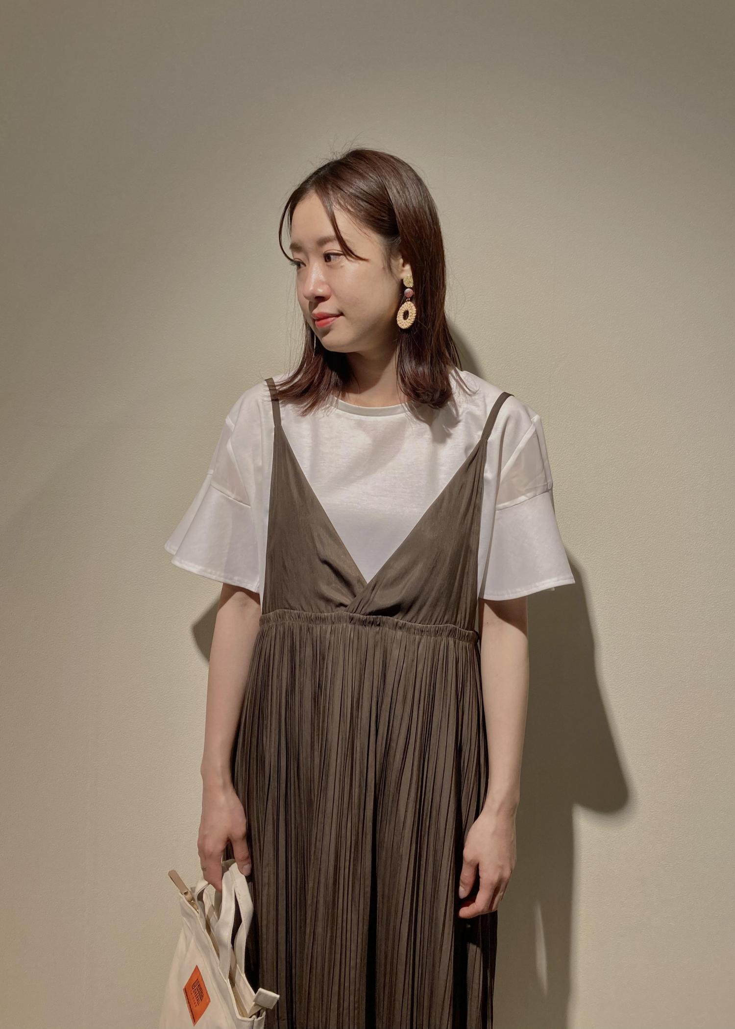 甘めな印象のキャミワンピを、シアーブラウスと合わせて、きれいめさをプラスしました。