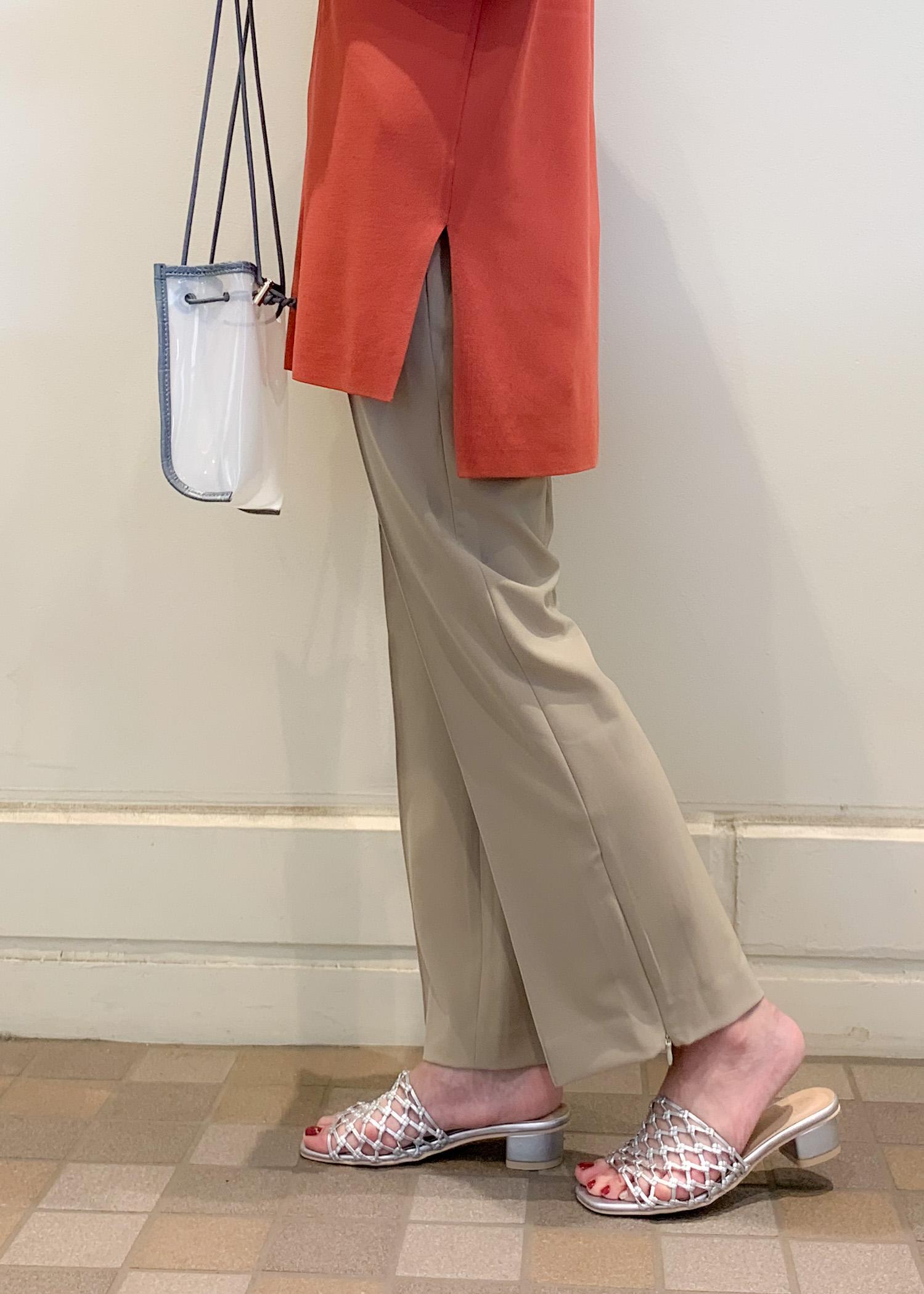 ラク美パンツは程よくスッキリしたシルエットなので、トップスはチュニック丈でも合わせやすいのでお勧めです。