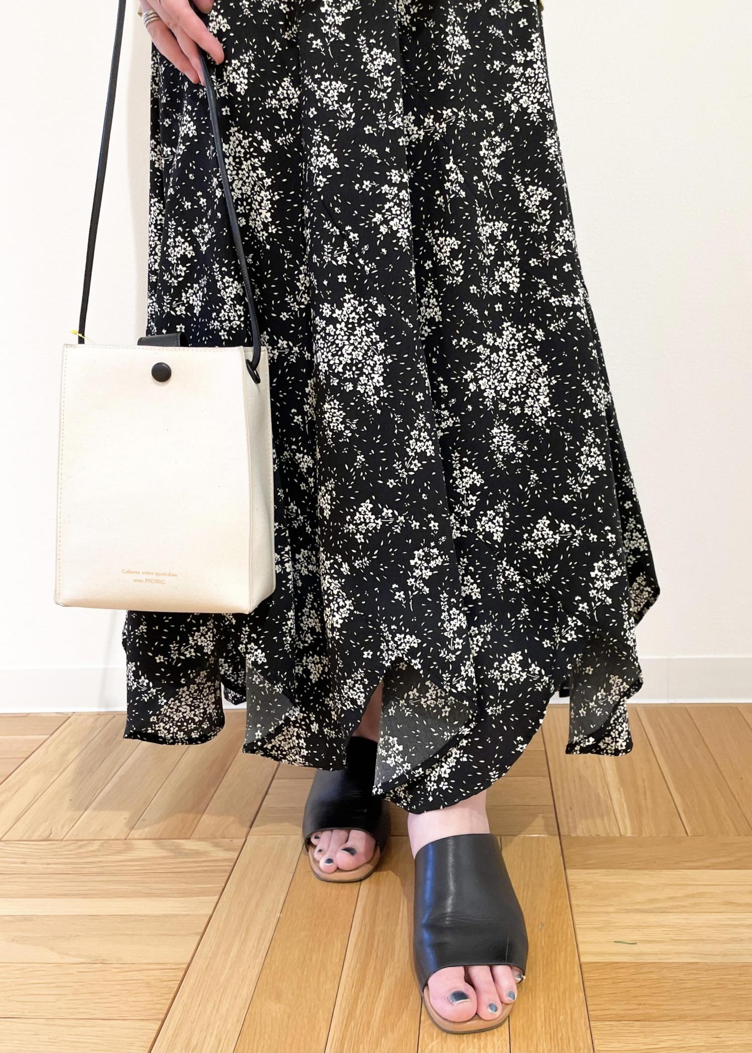 フェミニンなブラウスと花柄スカートで、柔らかい印象のコーディネートにしました。黄色のトップスが明るく元気な印象をもたらしてくれます(*^^*)
