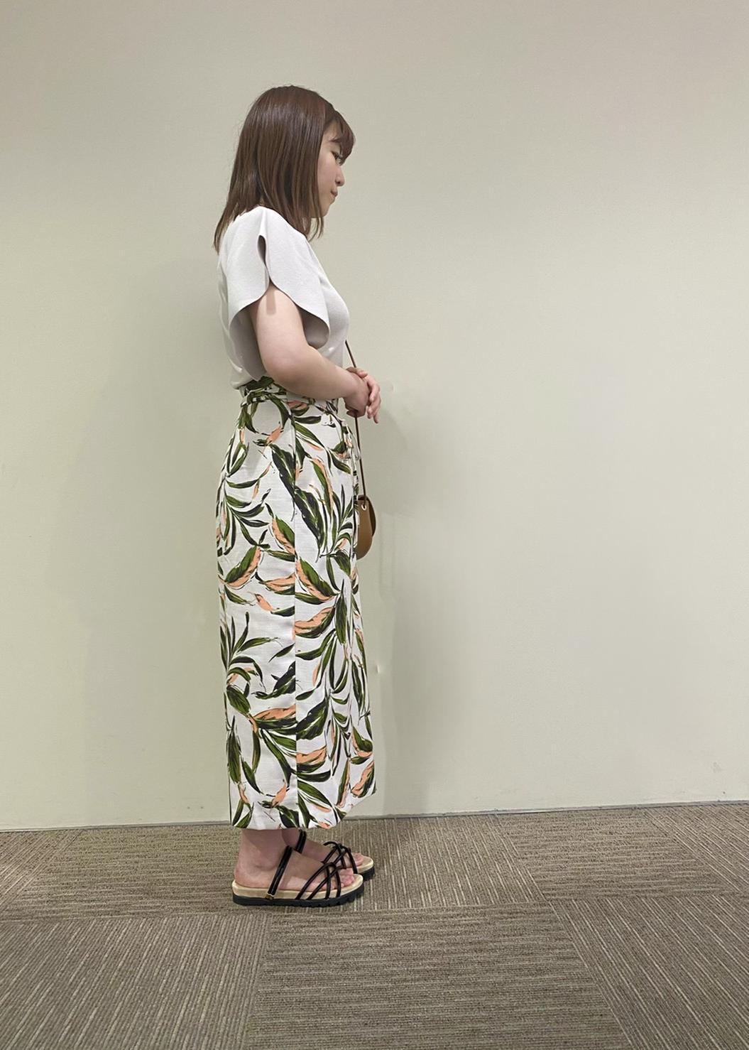 ボタニカル柄が特徴的なスカートは、この夏大活躍しそうなアイテムです。