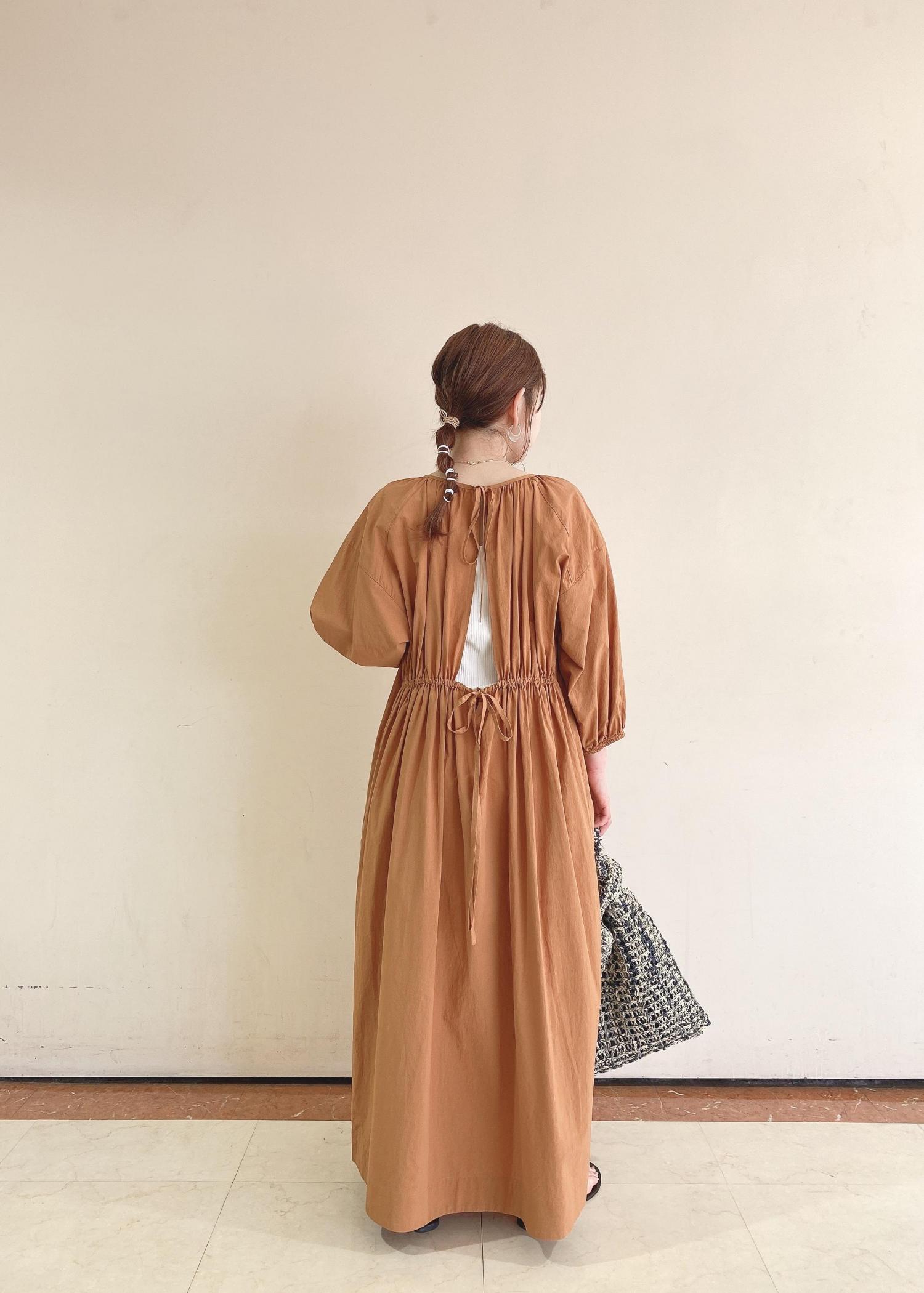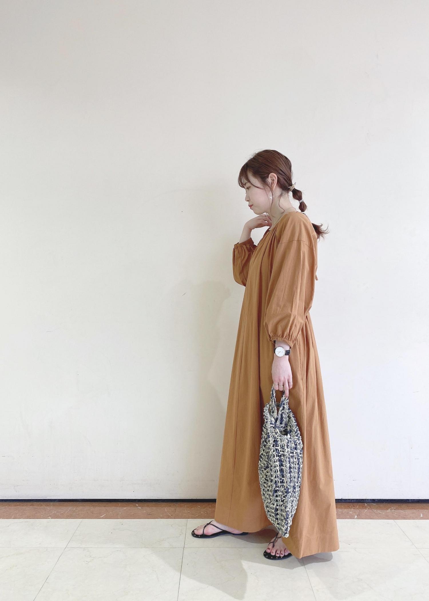 夏らしいカラーとバックリボンが可愛いワンピースにベーシックカラーの雑貨を合わせて大人カジュアルにしてみました。