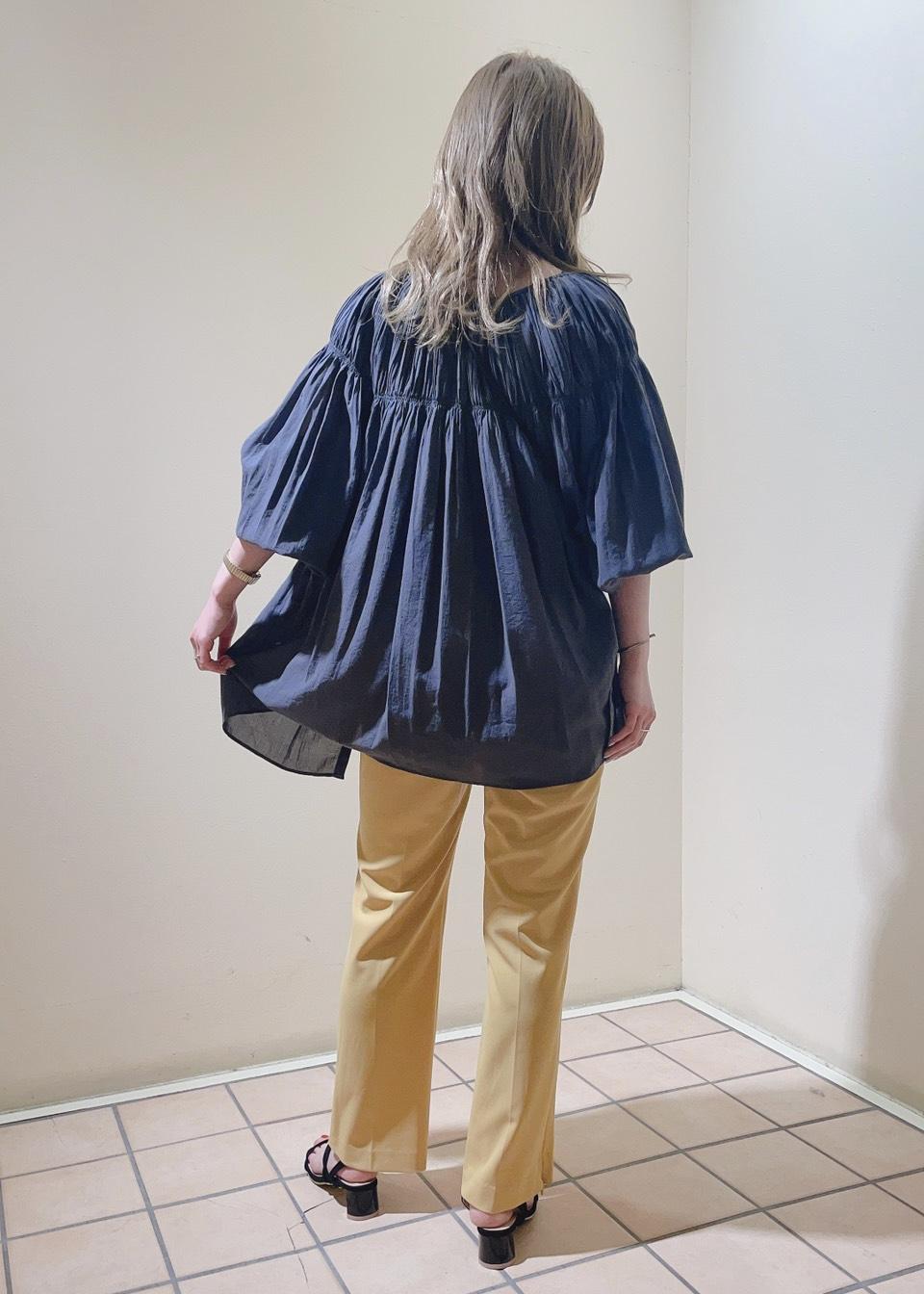 ふんわりとしたブラウスにすっきりとしたボトム合わせメリハリのあるコーディネートに仕上げました。