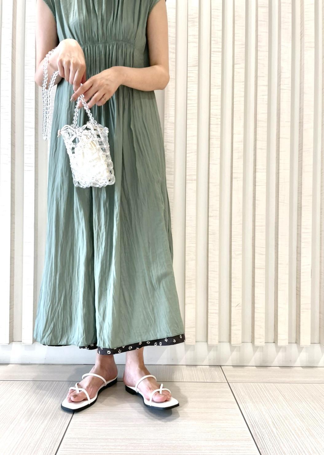 爽やかなグリーンで、夏にぴったりワンピースです。 さらっとした着心地で楽ちんですが、大人っぽいカラーなのでラフになり過ぎず、大人っぽく着こなせます。