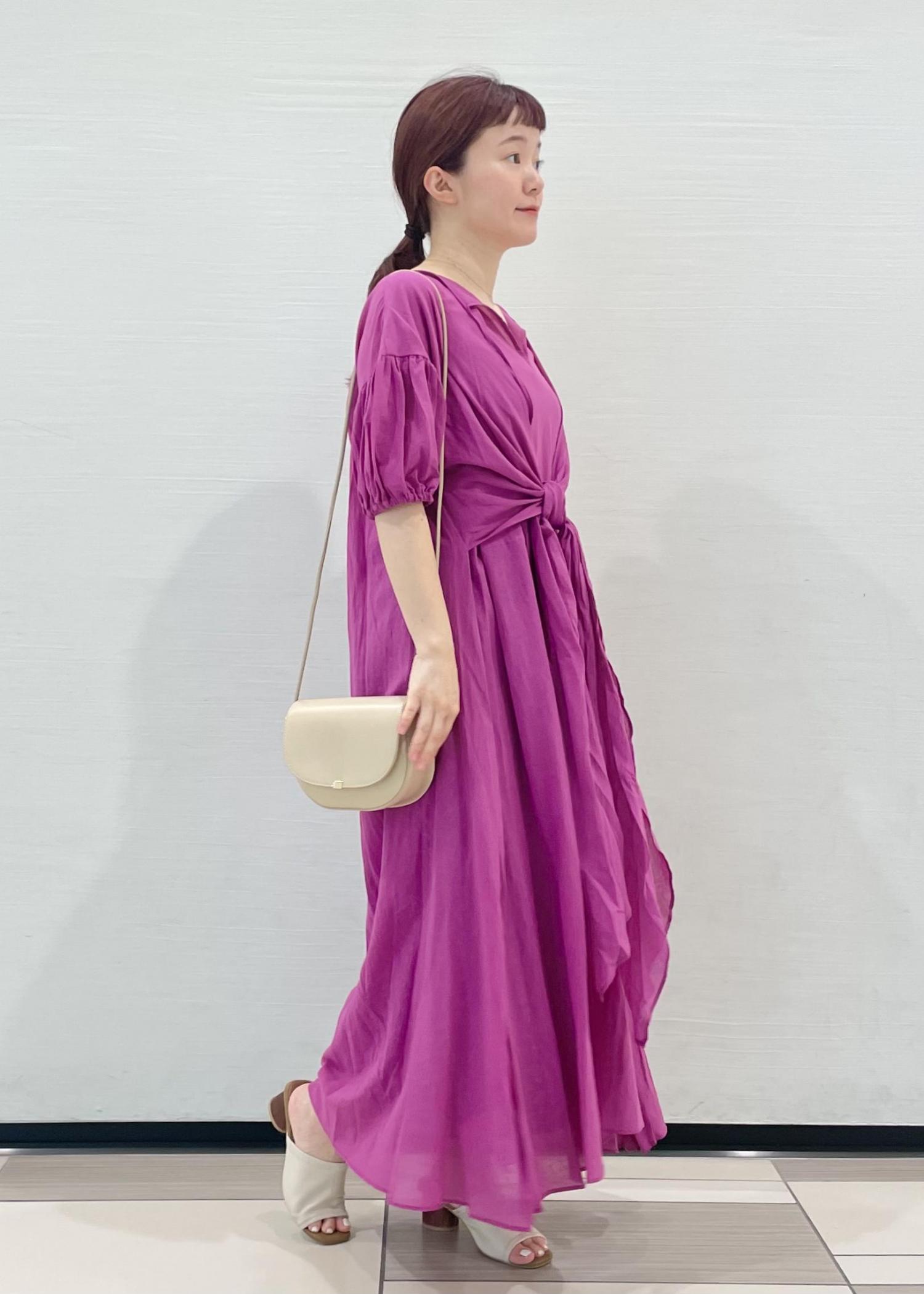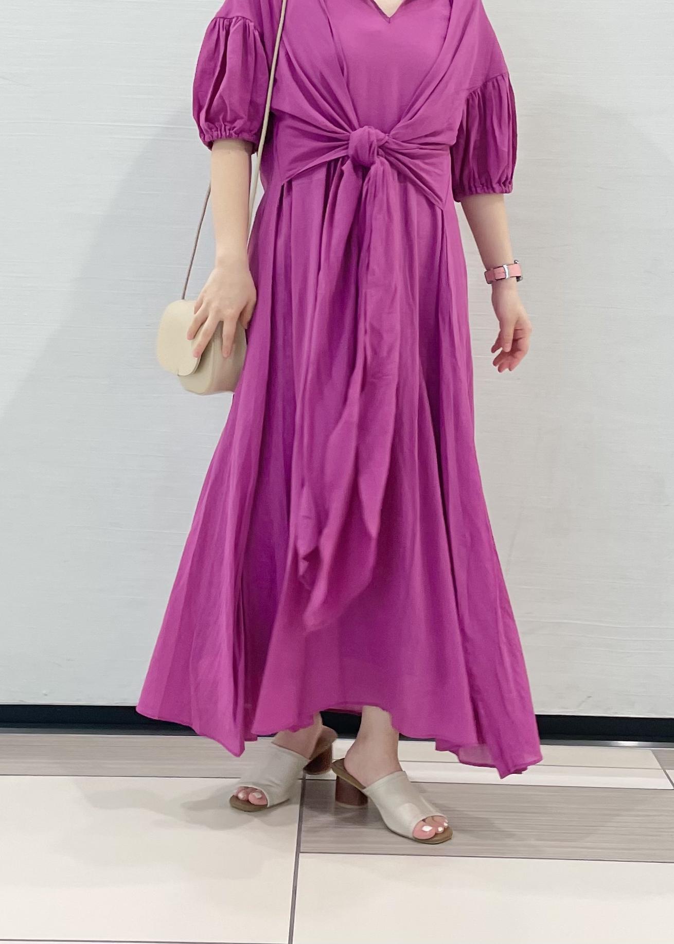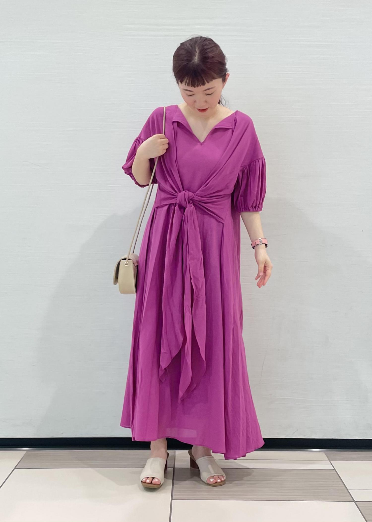 夏にぴったりなビビットカラーのワンピース。 前後どちらでも着ることができ、リボンの結び方もいろいろあるため着るたびに新鮮な気持ちで着ていただけます。 一枚でも十分可愛いですが、パンツと合わせるとより今年らしくおすすめです。
