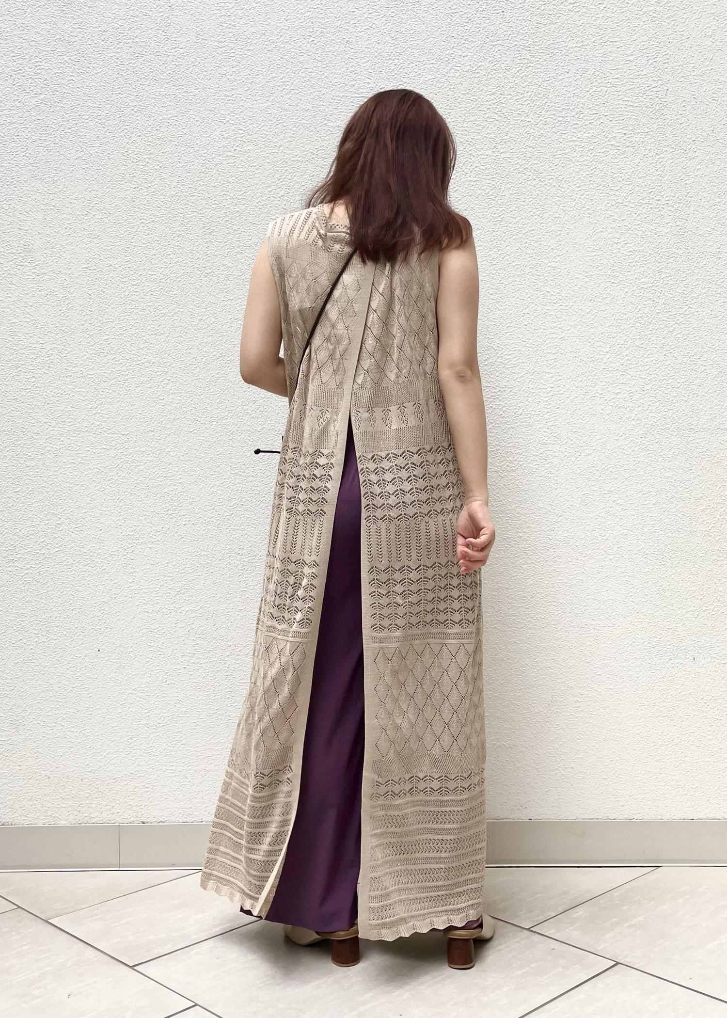 トレンドの透かし編みワンピースを使ったコーディネート。