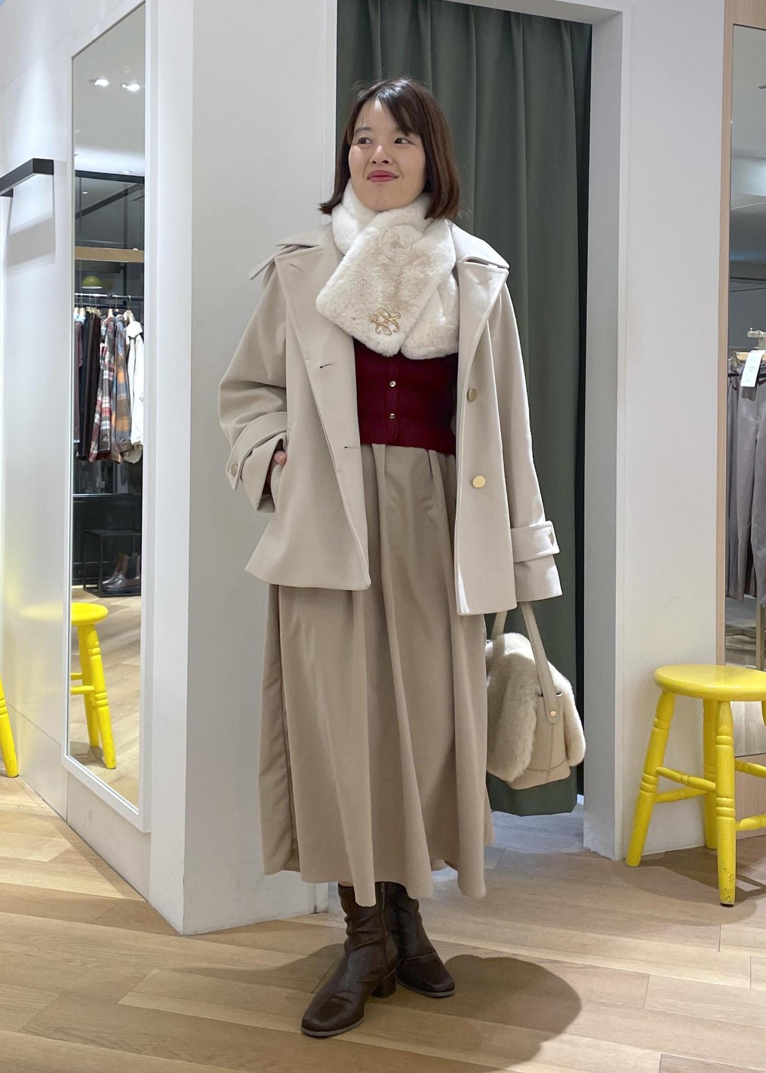 ペプラムニットを活かした大人かわいいコーディネートです。