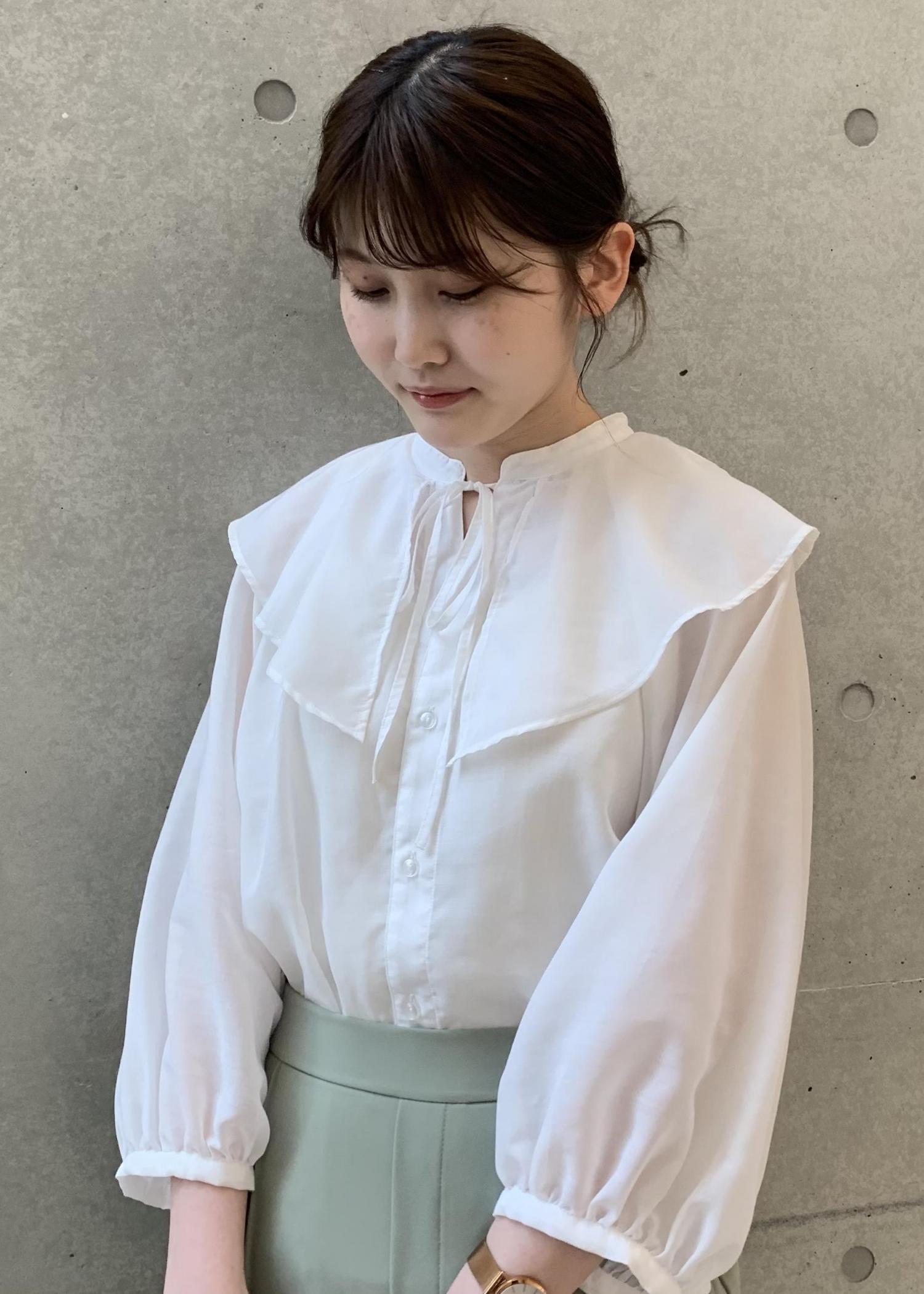 トップス、ボトムスは柔らかい色味をチョイスしフェミニンな印象に。 小物をブラックやシルバーを入れることによってメリハリがつくように工夫しました。