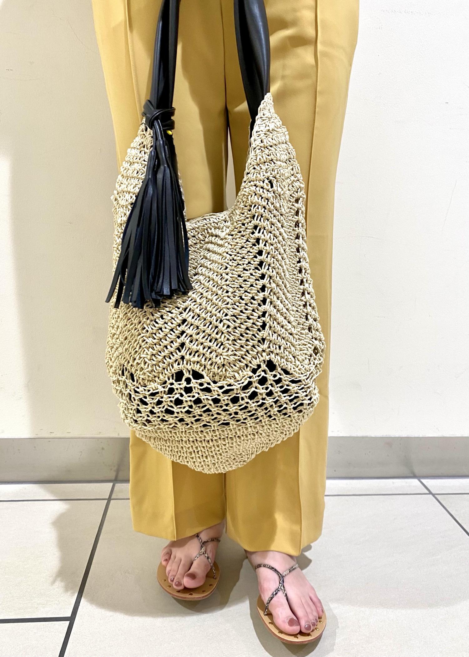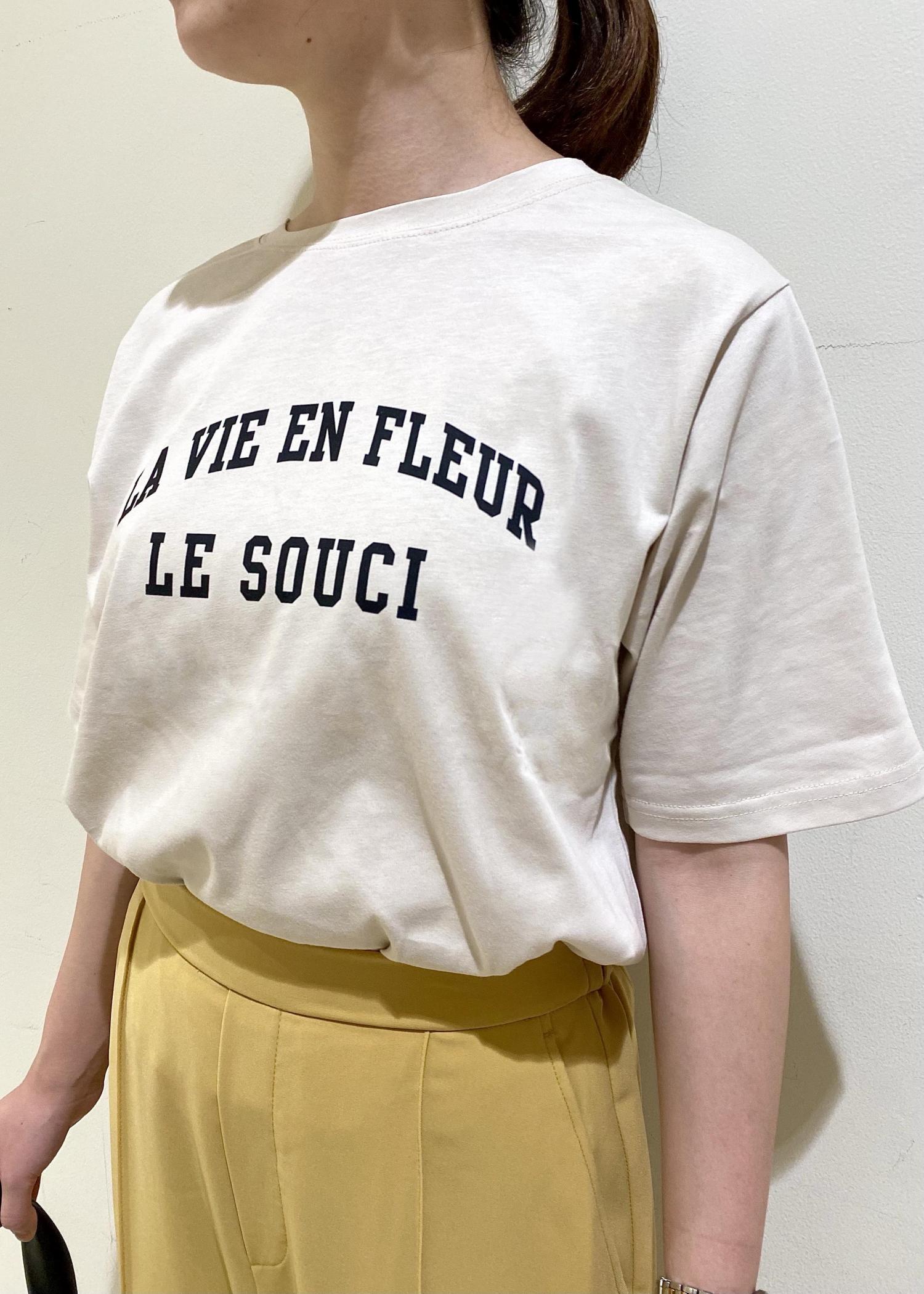 すっきりシルエットのラク美パンツ×Tシャツのシンプルなカジュアルスタイル。夏らしいイエローが映えるコーディネートです。