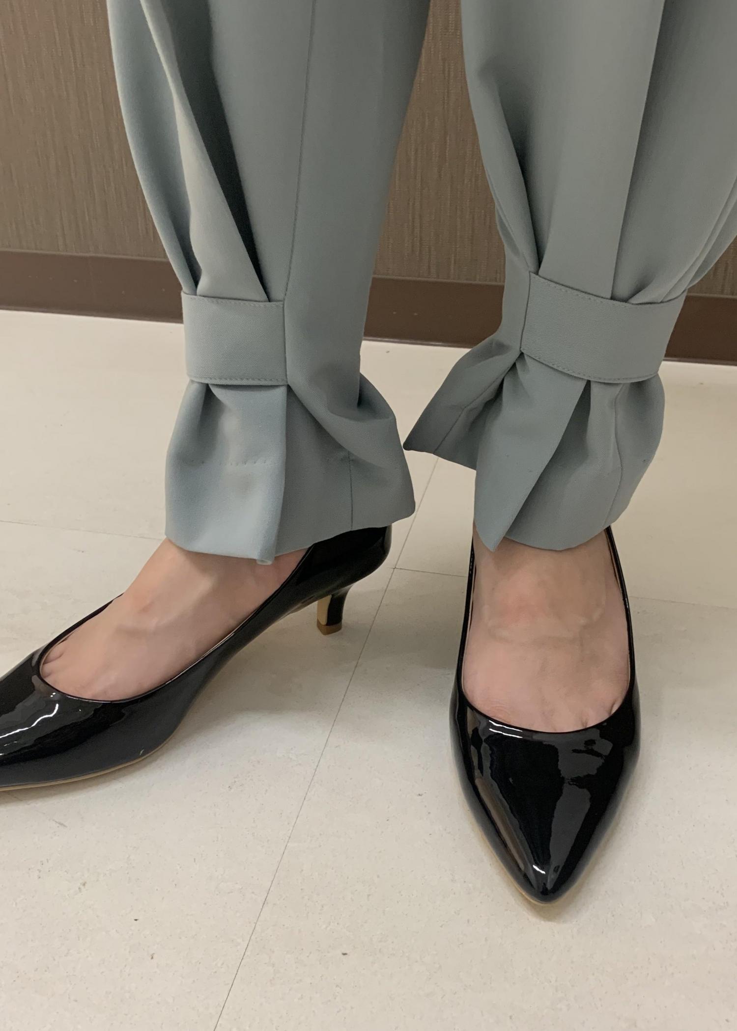 ベルト付き2way ドロストヘムパンツは着回しがしやすいです。特にパンツの裾を絞って甘めなトップスと組み合わせて着るのがおすすめです。ボリュームのあるトップス、チュニックなどに合わせても雰囲気が変わりトレンド感も出るので気に入っています。ウエストの後ろ部分がゴムになっているので、ストレスなく履きやすいです。裾が私の身長で少し長めなので、スッキリ見せたい時はパンプスなど足の甲を見せて履いた方がスッキリとしてキレイでした。