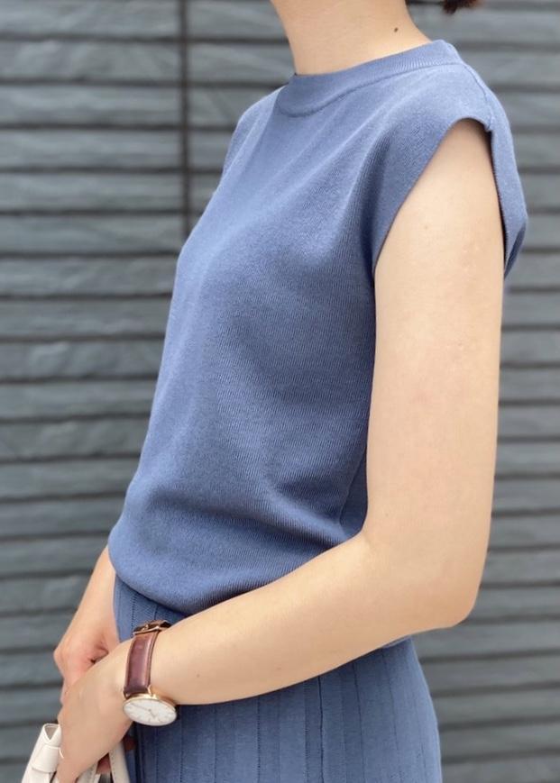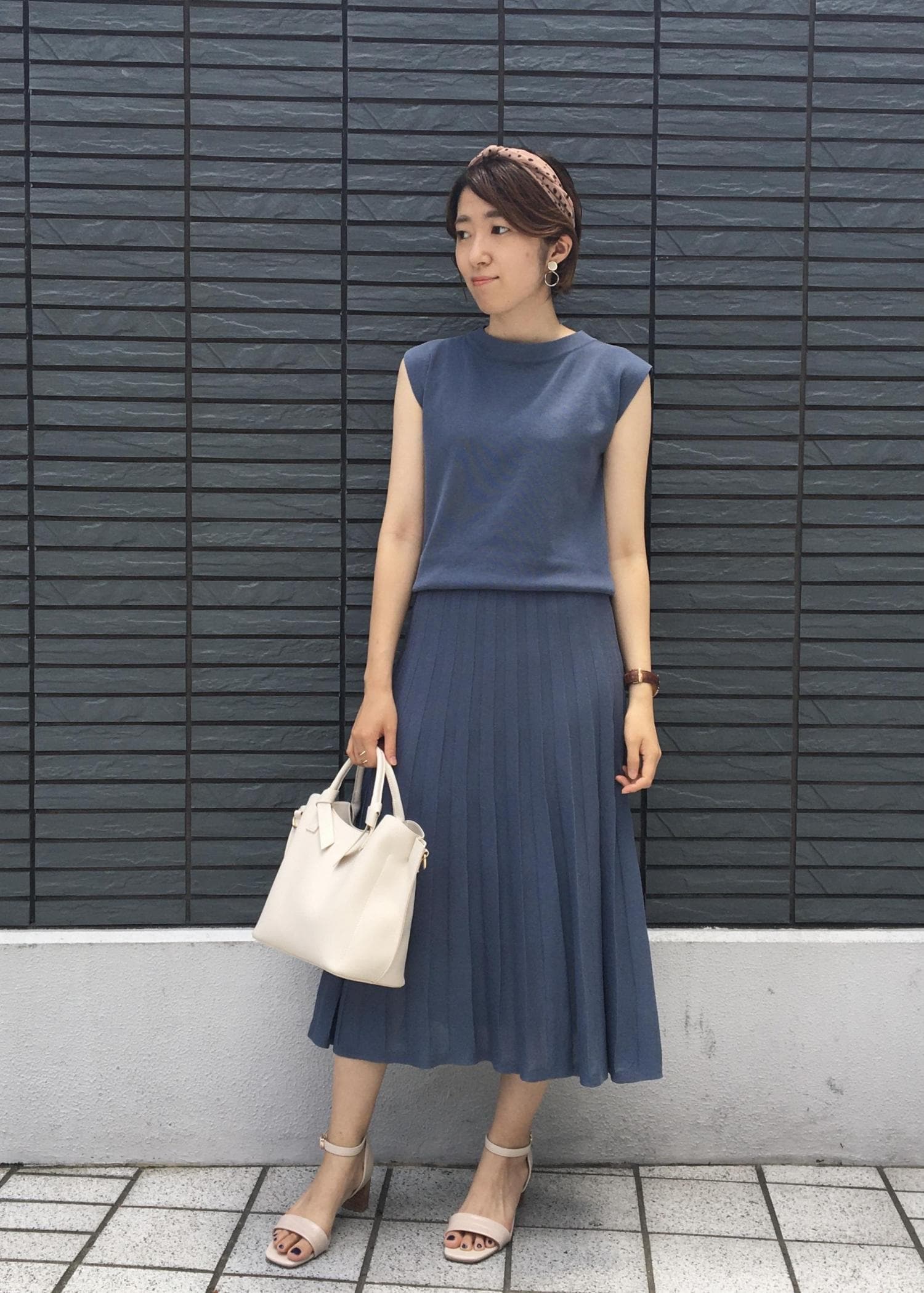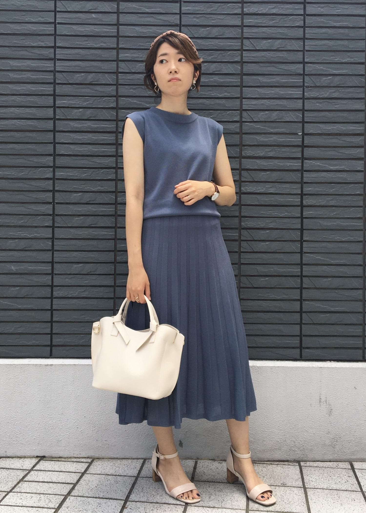 1枚でも着映えするニットワンピですが、ジャケットを重ね着することできちんと感のある着こなしに。