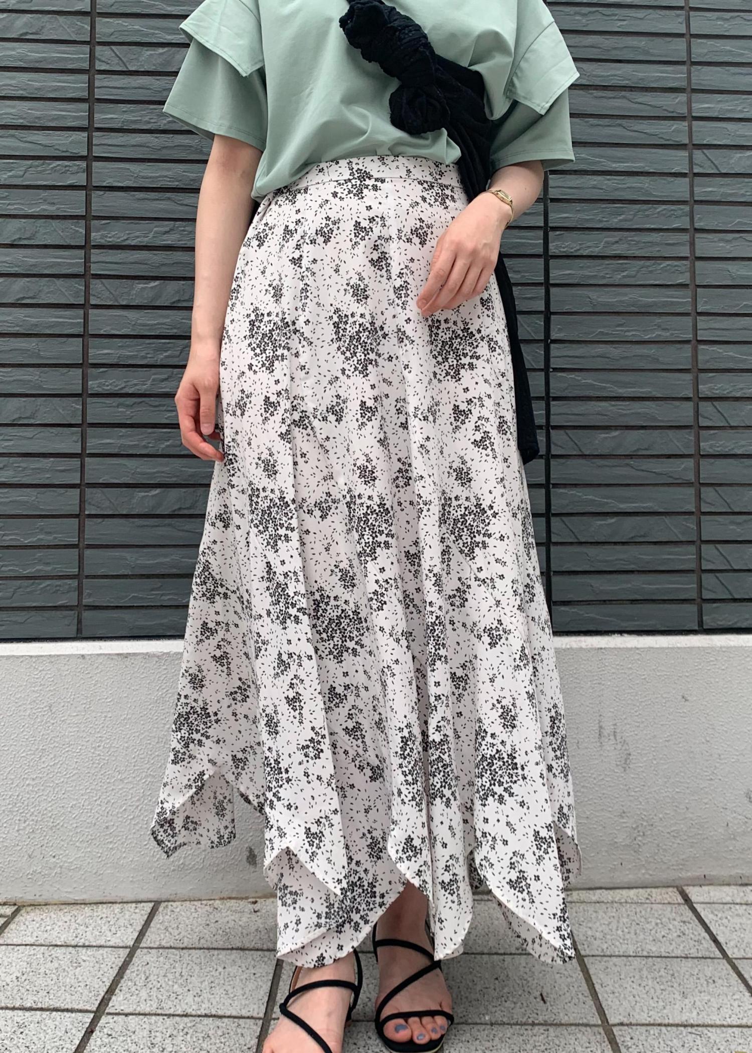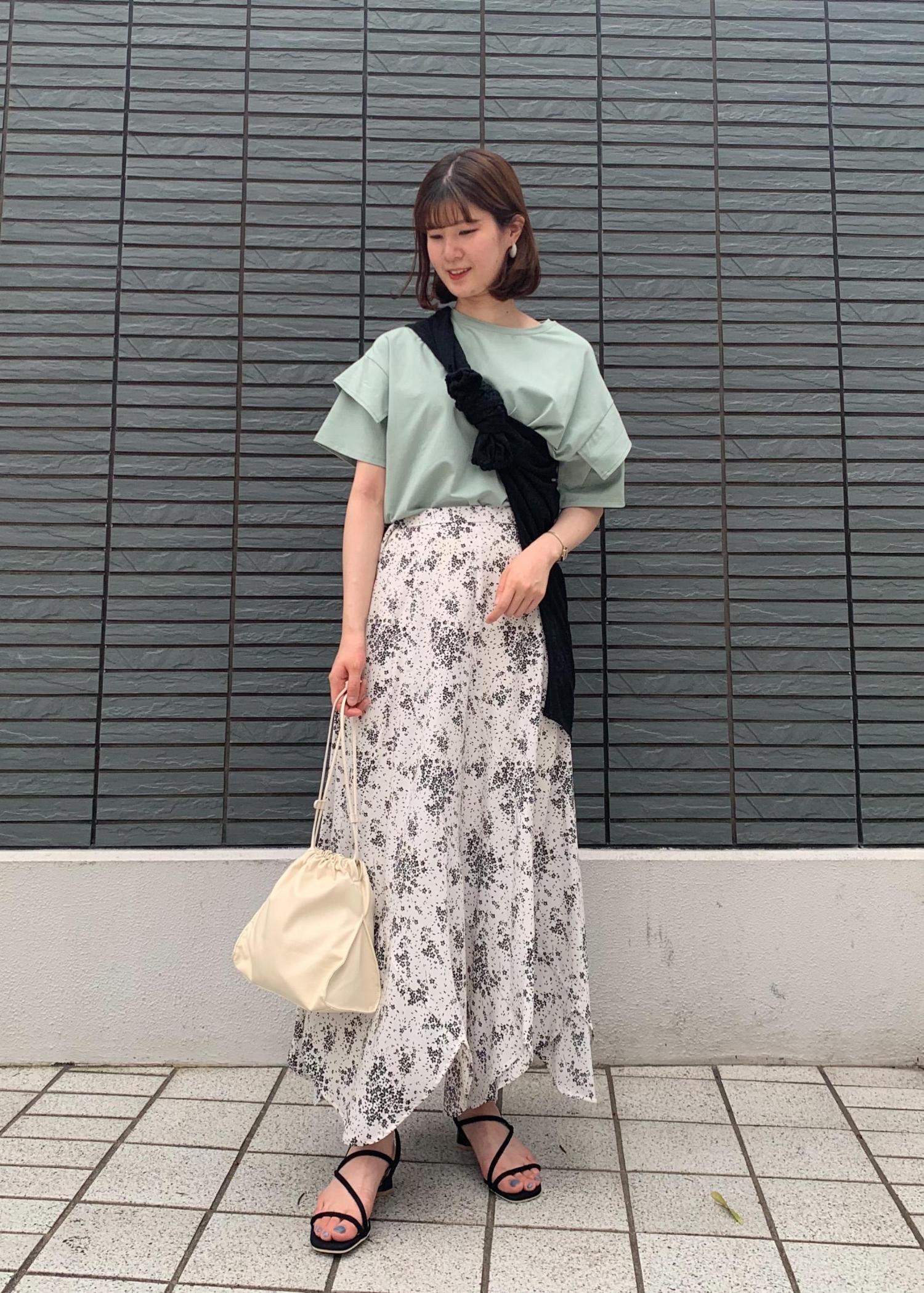 トップスには天然ミントから抽出した成分を含む素材が使用されているため接触冷感、抗菌防臭機能があり夏にぴったりです。爽やかなグリーンにスカートは動きのあるものを合わせてお出かけコーデにしました。
