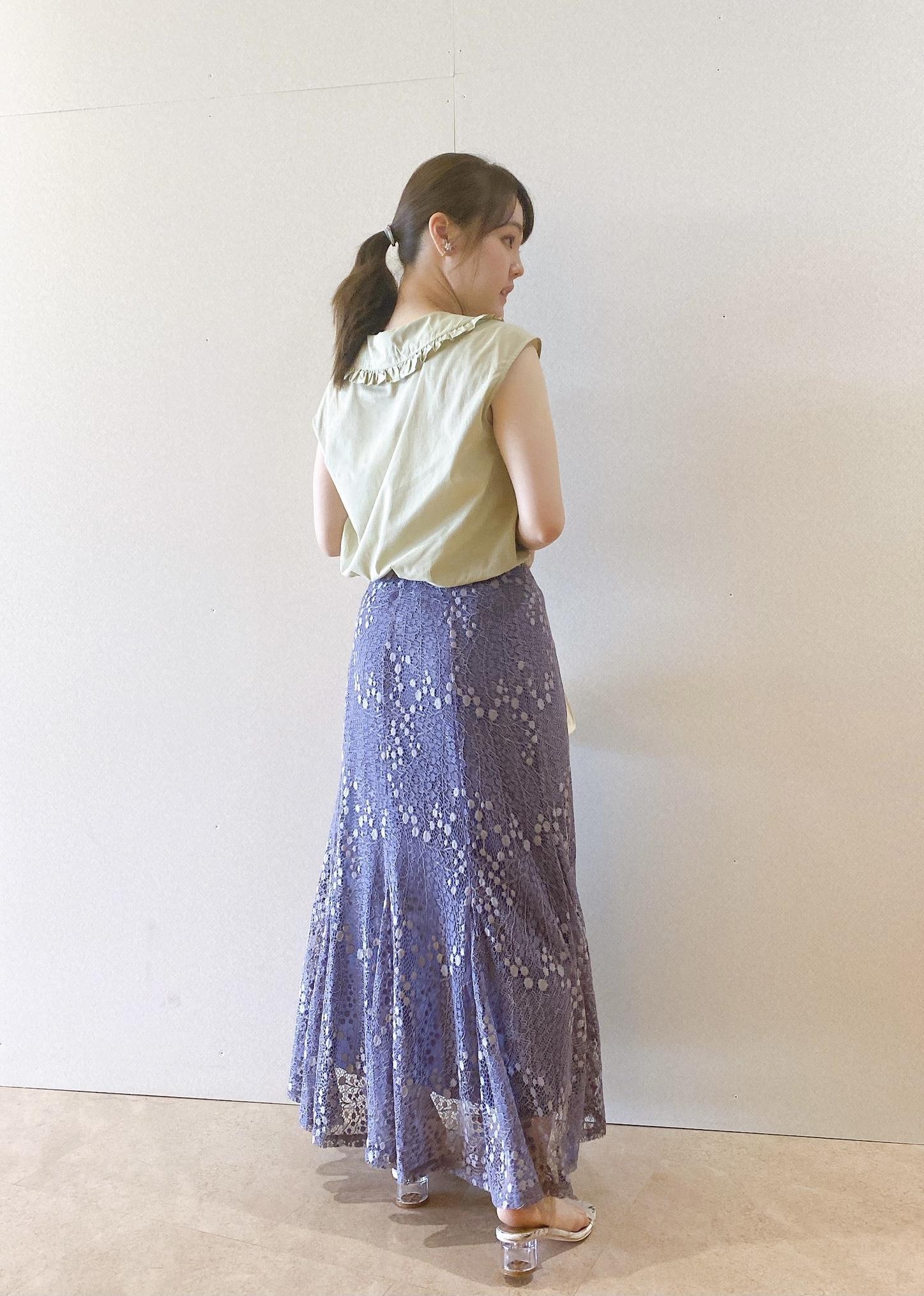マーメイドシルエットのレーススカートは、裾にかけてボリュームがあり、女性らしさを演出してくれます。