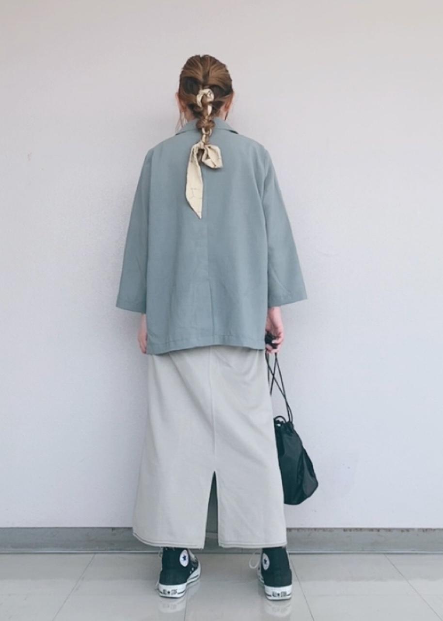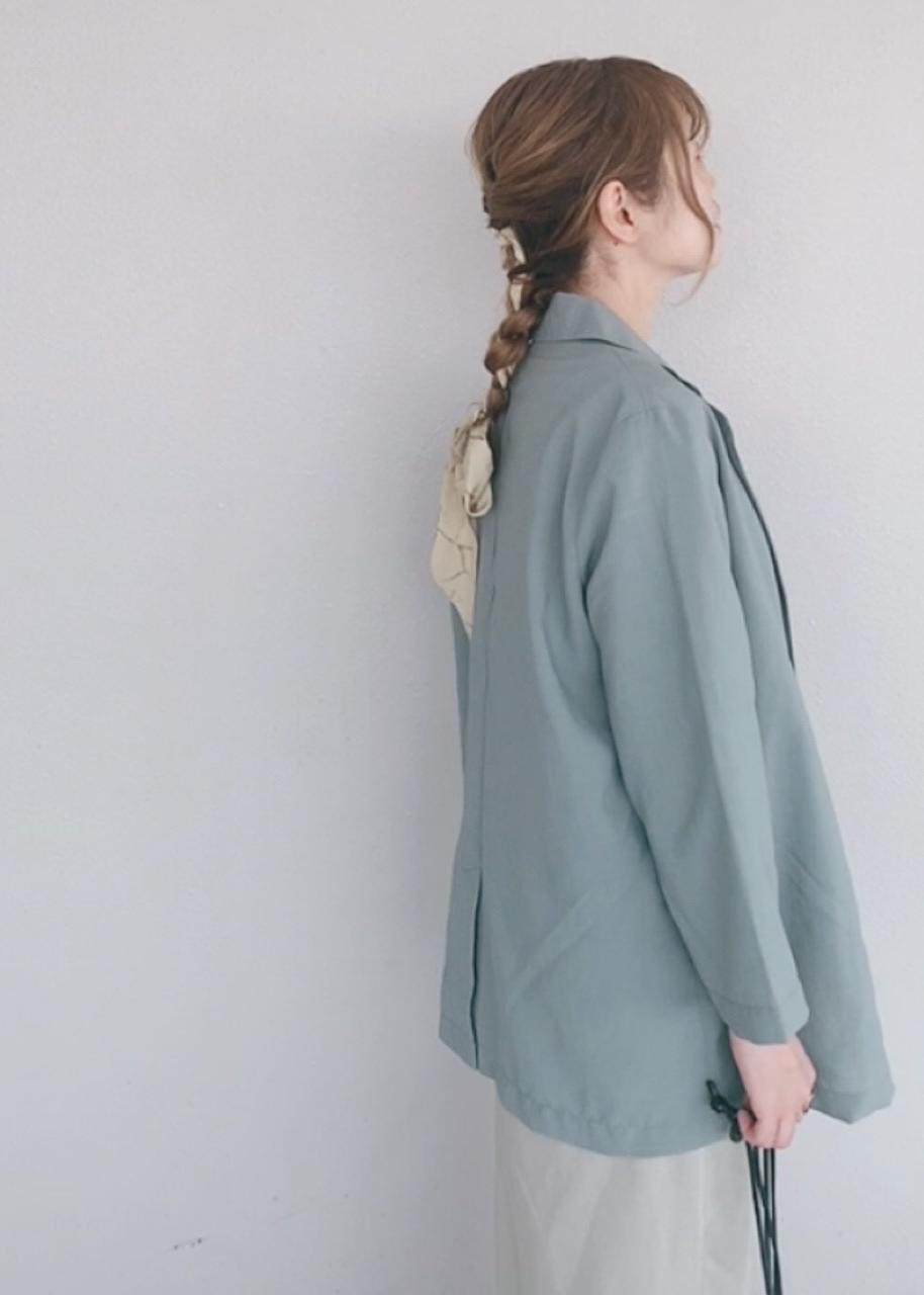 こちらのジャケットはやや透け感がありとても軽く、夏の羽織りとして着まわしのきく便利アイテムです。