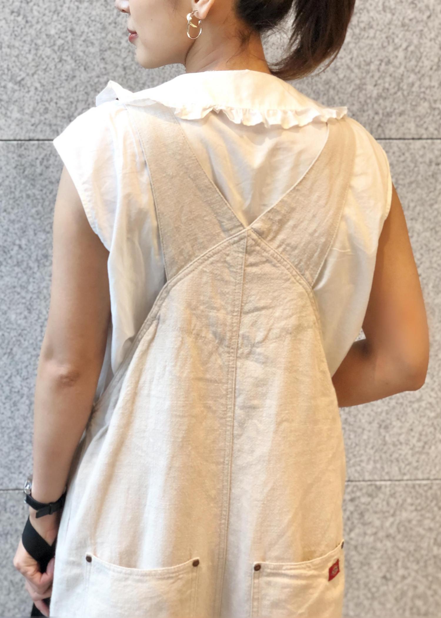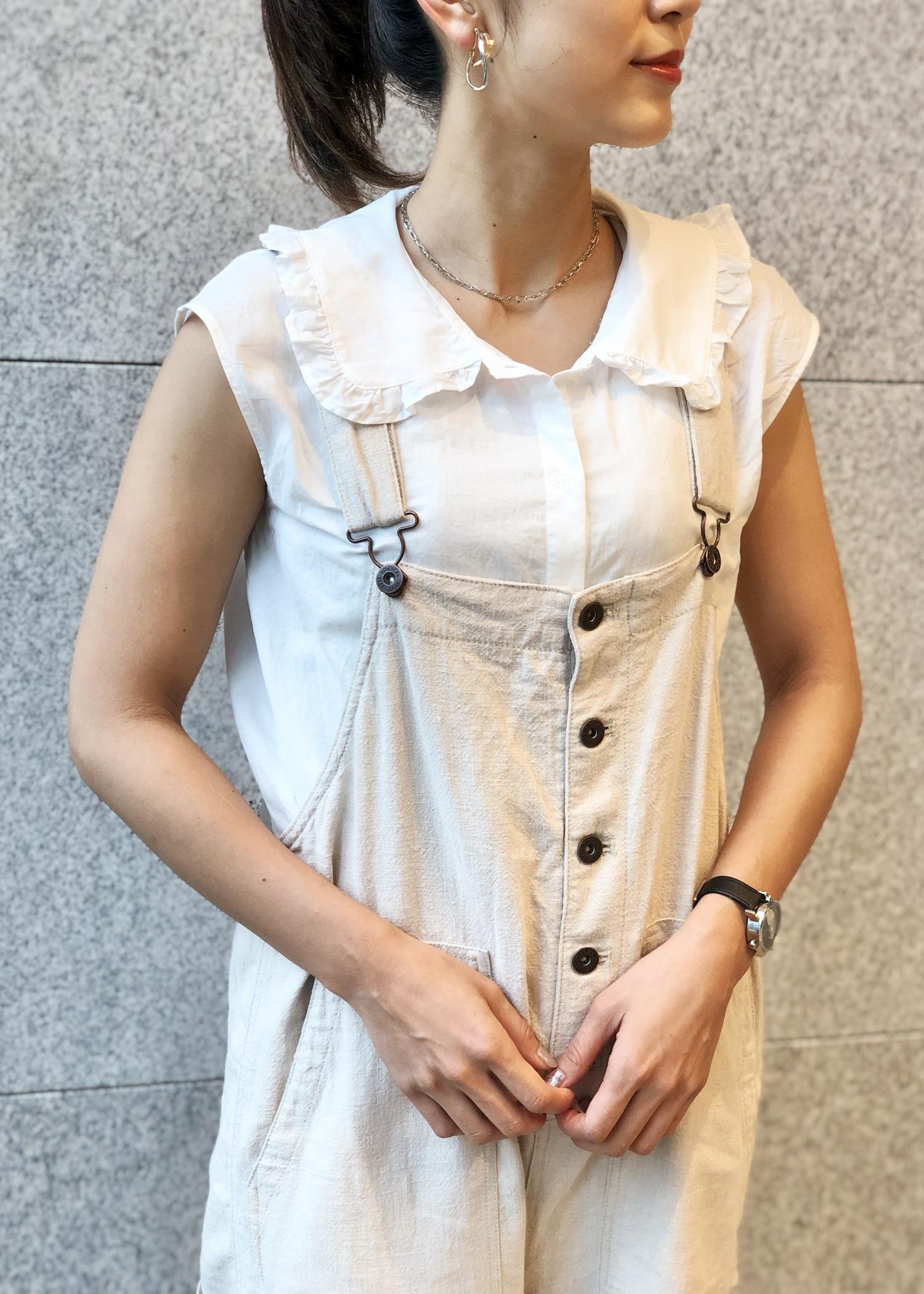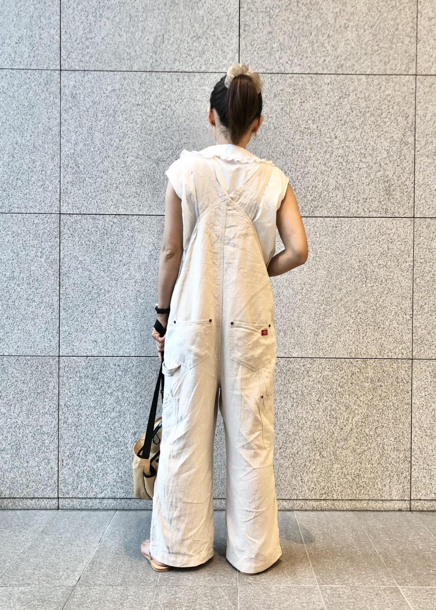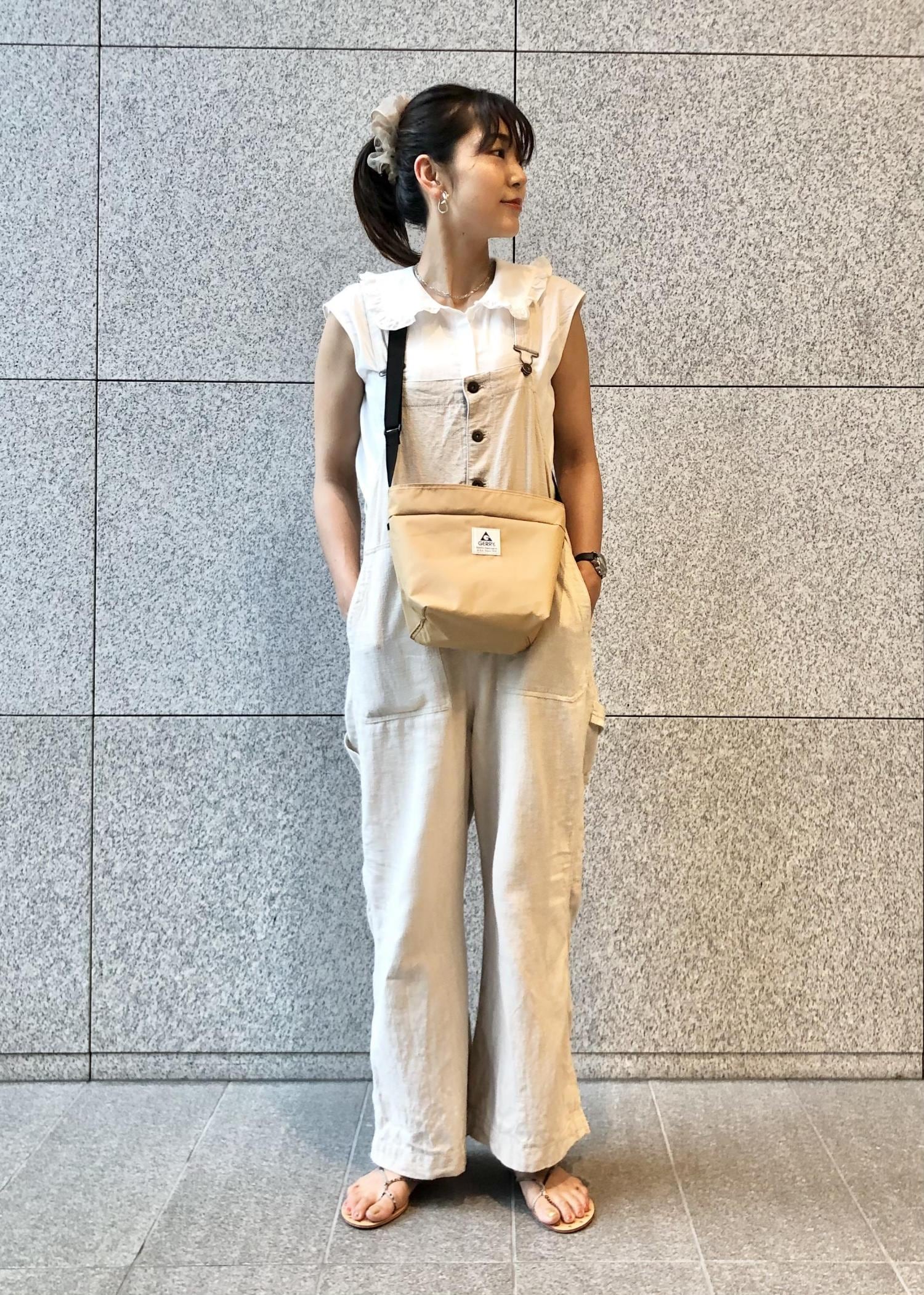 オーバーオールにTシャツ合わせでスポーティに着るのも可愛いですが、トップスをブラウスにする事でカジュアルダウンしすぎず、大人な女性らしい着こなしにできます。