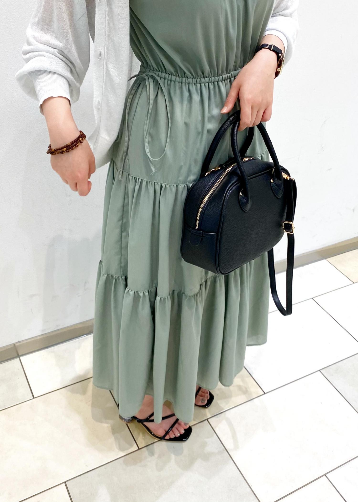 小物は黒で統一してカラーバランスをスッキリと見せています。